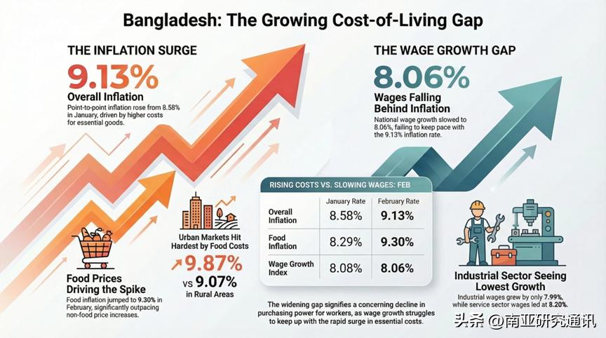 《日经亚洲》3月13日报道,中东冲突延宕加剧孟加拉国通胀困境,孟加紧同中印俄联络以合作纾困。中东冲突引发能源价格上涨推高孟运输、电力和生产成本,并最终传导至消费端,孟通货膨胀率连续四个月上涨后达9.13%,为十个月以来最高水平。目前,孟已着手加强同中印俄能源合作以摆脱困境。中国方面,依据现有长期供应协议,孟石油公司计划于3月13-29日从中石化接收三批柴油,每批约3万吨。印方面,孟官员要求印通过跨境管道增加柴油出口,但印表示将在平衡国内需求的同时评估这一请求。俄方面,孟已向美申请豁免以允许其进口俄燃料,目前正在等待美方回复。专家指出,孟通胀高企虽受地缘政治紧张短期推动影响,但更多与其汇率及食品市场长期波动相关。当前,孟府正致力于重振投资、加速经济增长,企业也迫切希望降低融资成本,但若过早放松政策,可能会加剧通胀并削弱本币汇率。