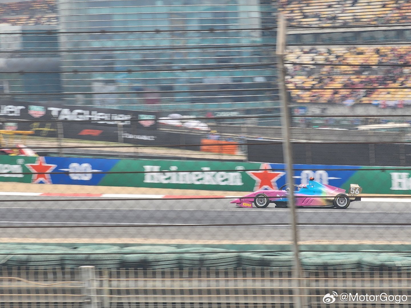 刚刚结束了F1学院赛,后面是保时捷卡雷拉杯。这个近身贴斗也很刺激 上海·上海国际赛车场-旅游景区