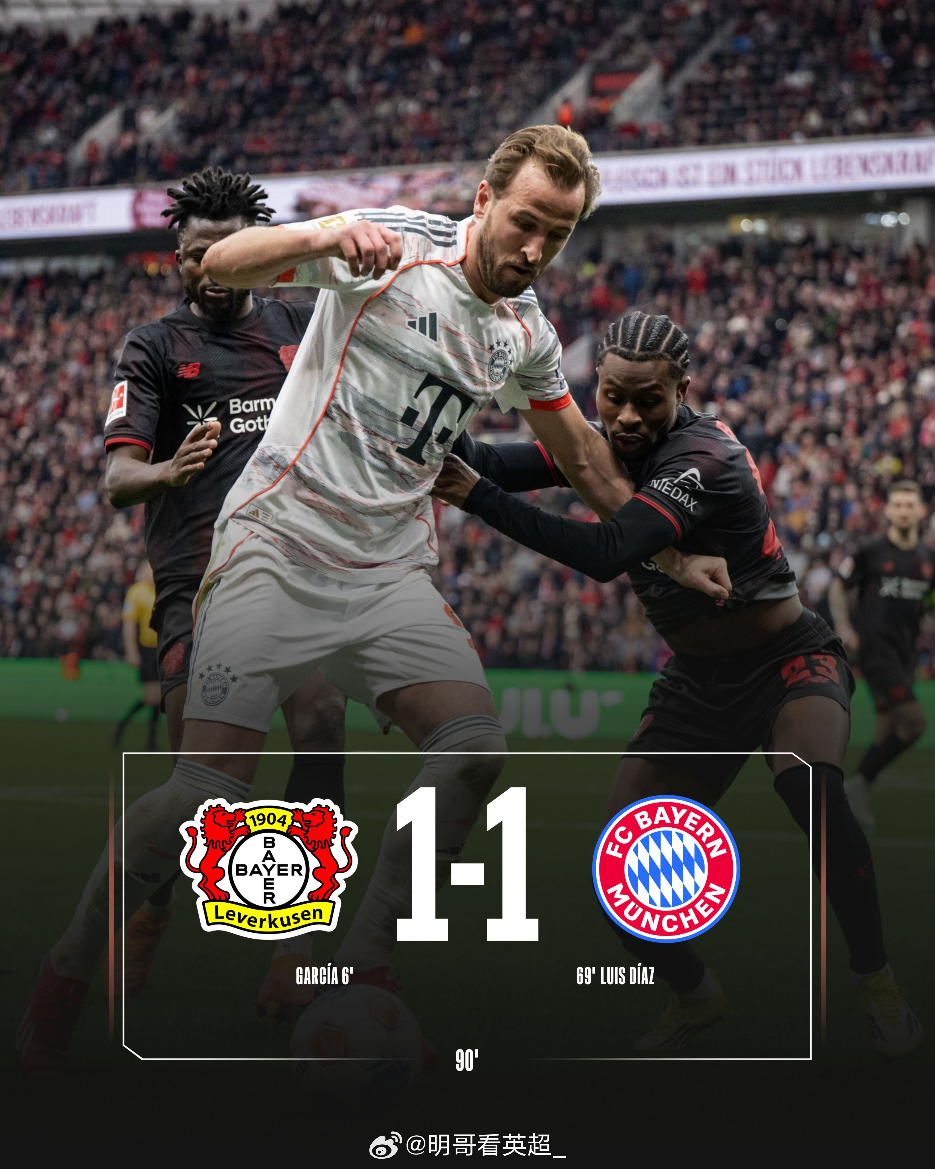 勒沃库森1比1拜仁 裁判成主角!拜仁这场丢分还罚下两人,德甲总算留点悬念了