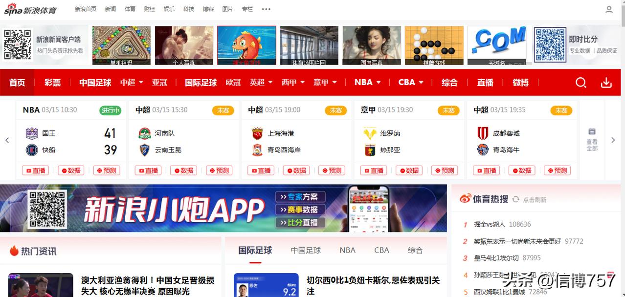 好长时间没有用过新浪网站了,今天因为关注WTT乒乓球赛去新浪体育浏览了一下,结果新浪网站上全部是足球赛和篮球赛的相关消息,难道新浪网只关注足球和篮球吗?新浪体育可是70后80后的热爱频道。