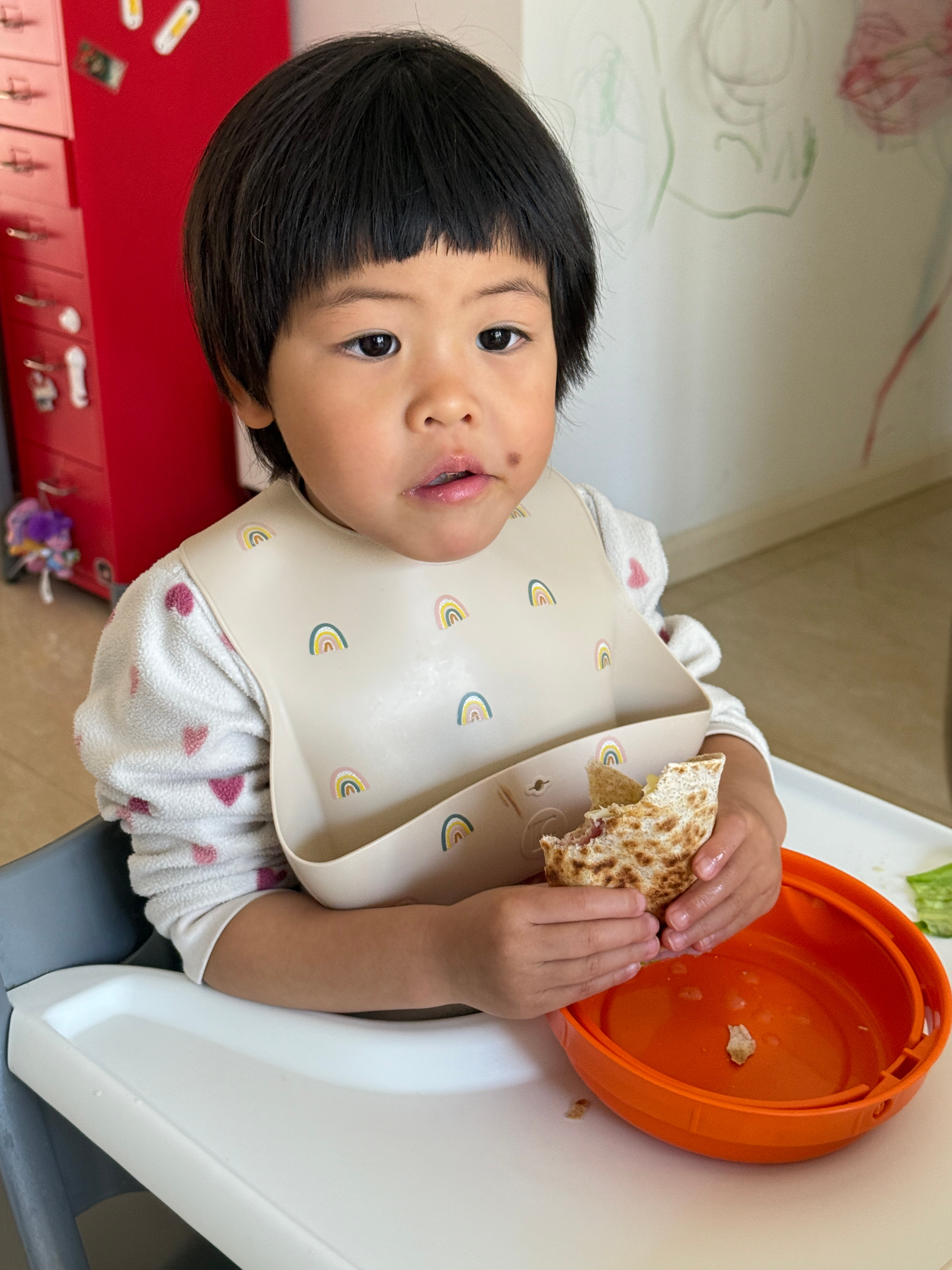 球宝饭后想吃菠萝,让我切,我说我不会,你问问阿姨有没空吧球宝吭哧吭哧的抱着你可以