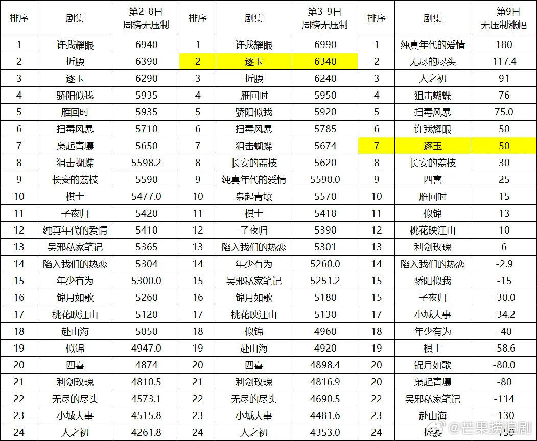 《逐玉》好争气,第九天拉新进年榜了