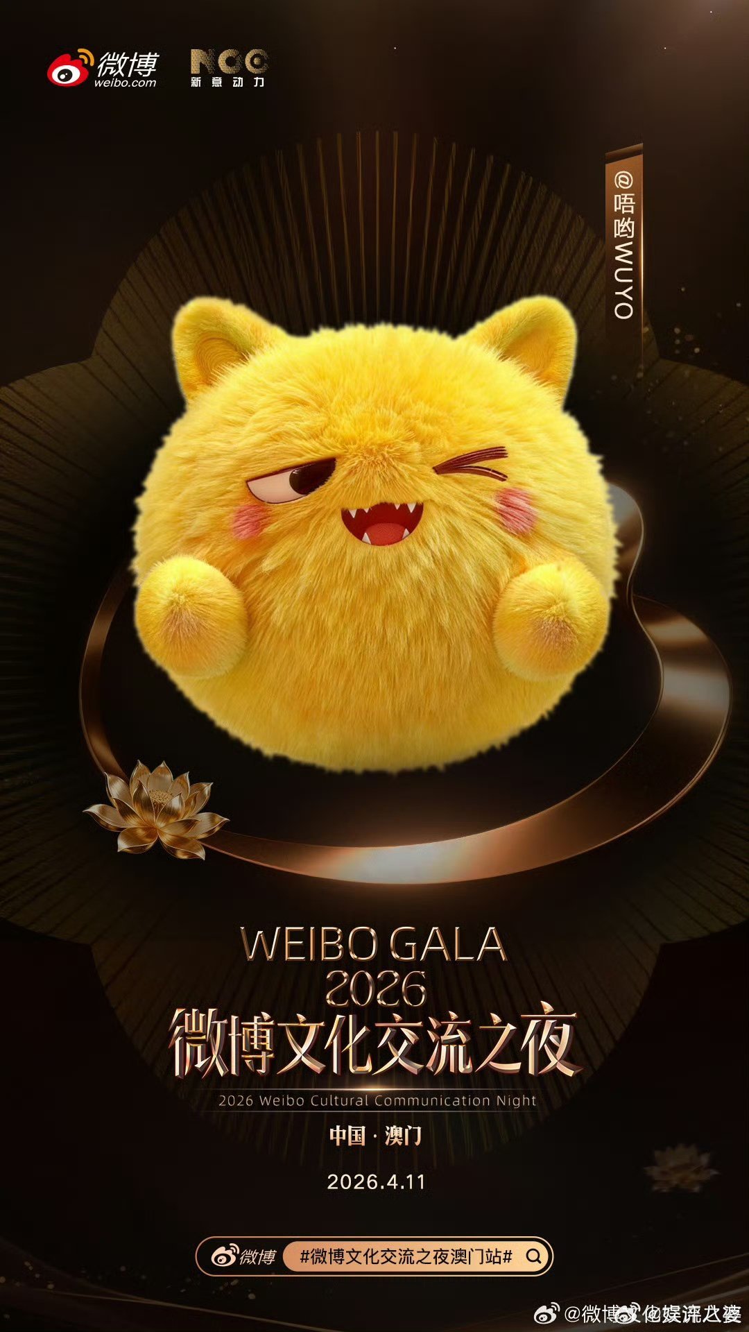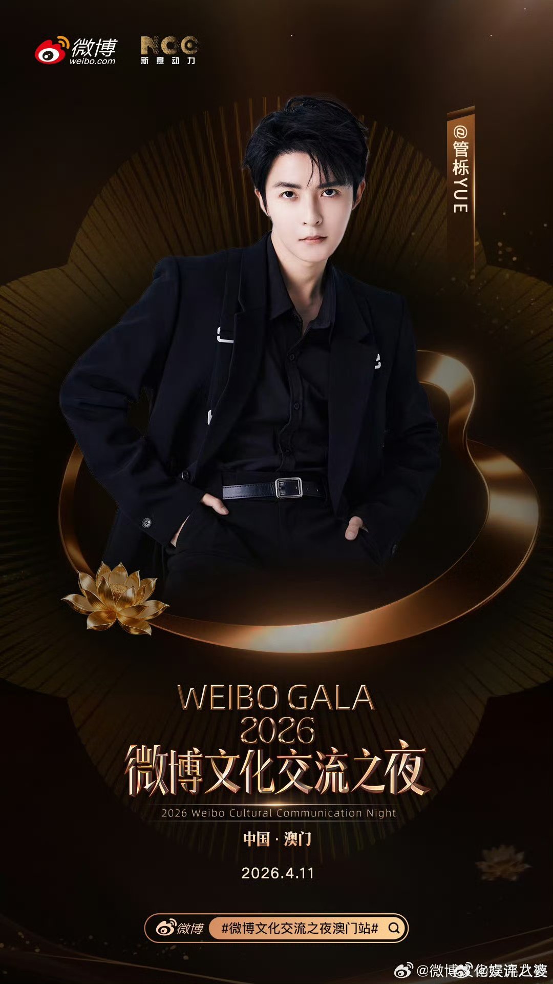 中国澳门,4月11日,微博文化交流之夜澳门站 首批阵容解锁!从星光到文化,从舞台到对话,这场盛事已经拉满期待值!微博文化交流之夜澳门站阵容