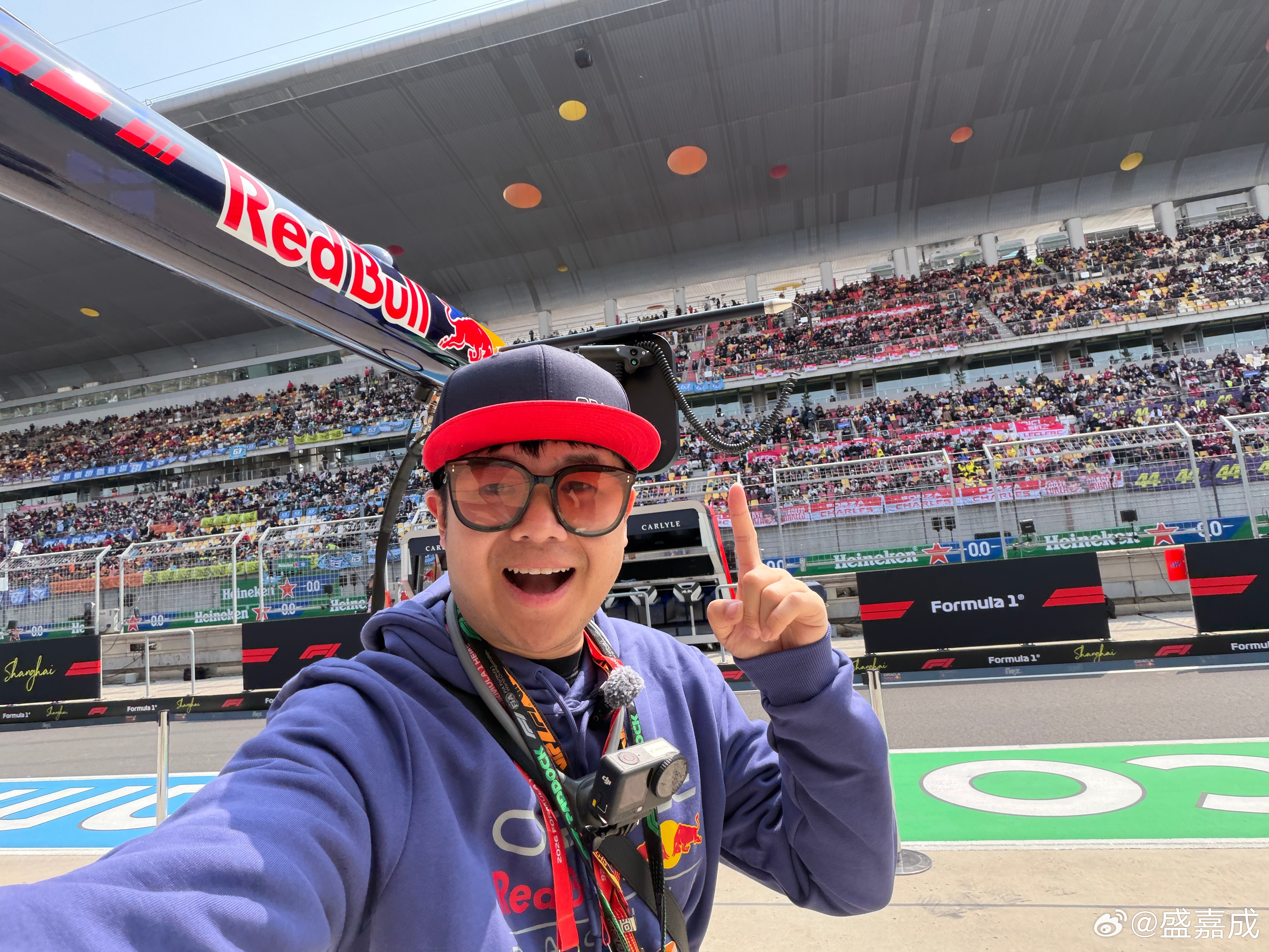 F1开始啦!!!!!!抓拍潘子被f1官方ig逮住了 尴尬你们今天在哪?在赛场的举