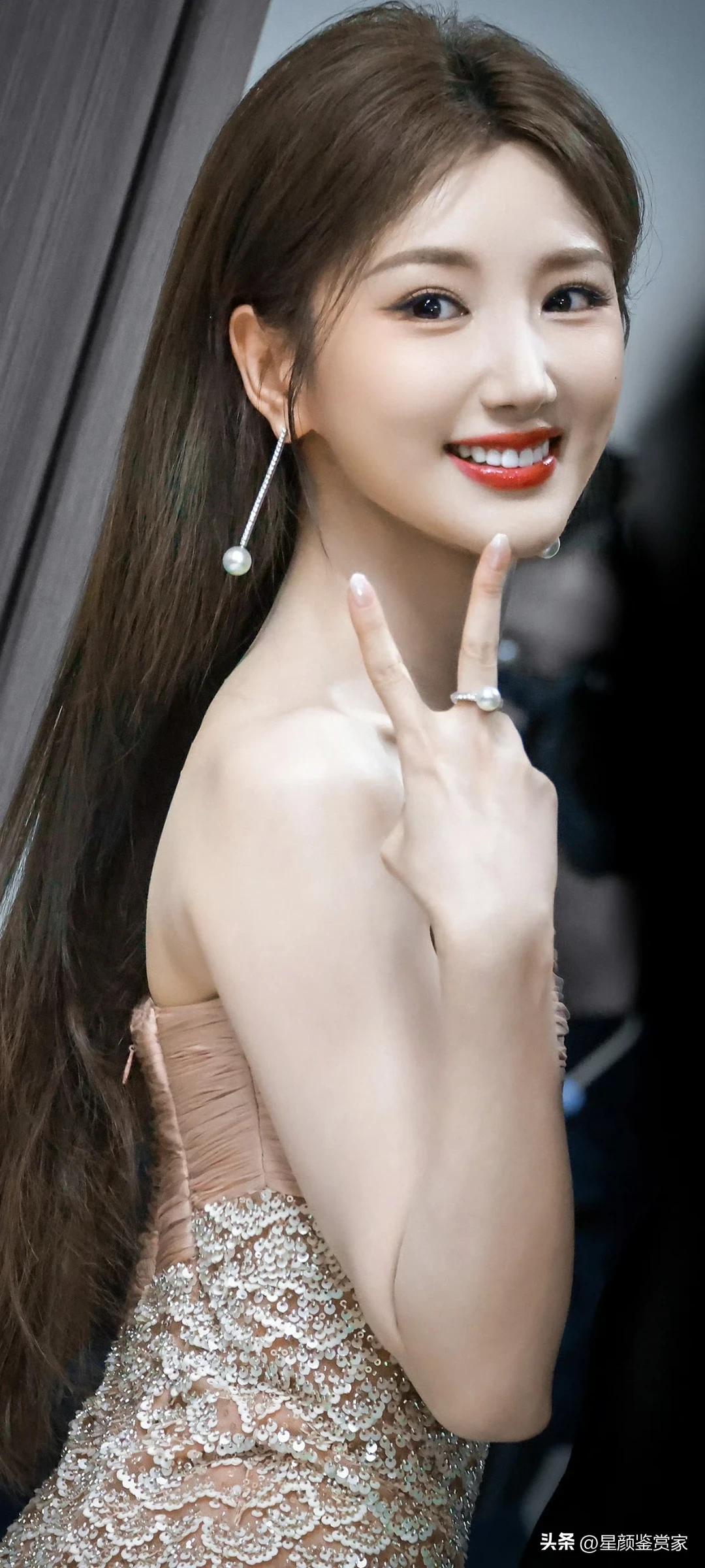 王玉雯壁纸~“这条闪着光泽的纱裙造型,让人一眼就迷上了这份美。