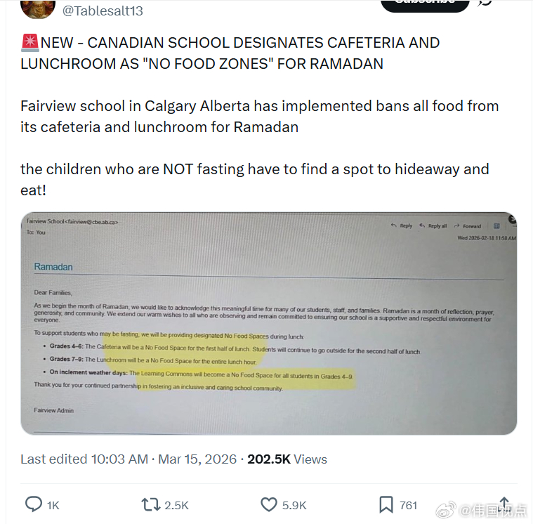 加拿大一所学校将餐厅和午餐区划为斋月“禁食区”