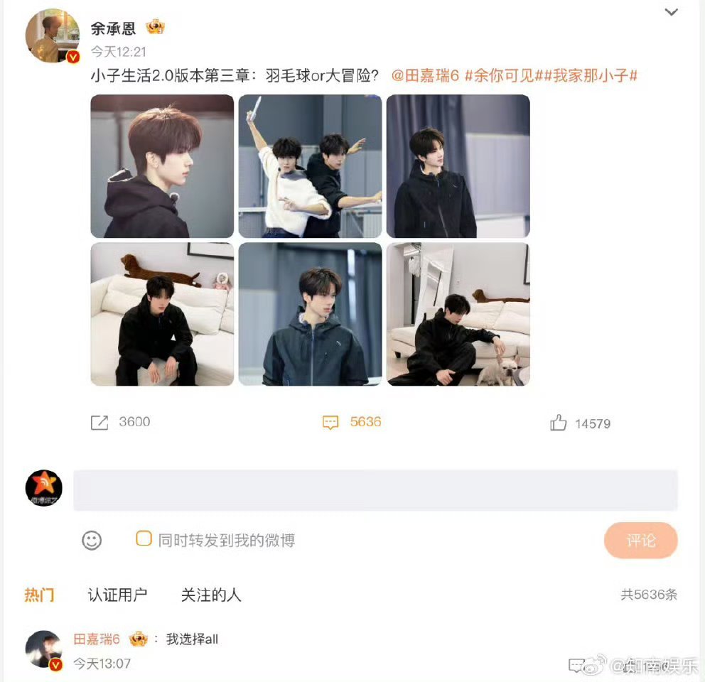 田嘉瑞没见到余承恩外甥女后续来了我家那小子田嘉瑞没见到外甥女没关系,和余承恩俩人凑一起运动量拉满,对抗路兄弟的日常我能追一百集!坐等他俩约羽毛球,也蹲一个田嘉瑞和果果同框~