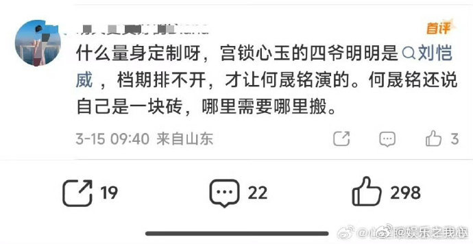 何晟铭因不愿演男主和于正冷战在娱乐圈这个大舞台上,明星与导演之间的故事总是充满了各种戏剧性。今天,咱们就来聊聊何晟铭和于正之间那段因 “男主之争” 而引发的冷战故事。何晟铭,大家对他肯定不陌生。他凭借《宫锁心玉》里深情的四爷一角走进了大众的视野,精湛的演技让无数观众为之着迷。而于正,作为知名的编剧和制片人,他的作品常常能在荧屏上掀起一波又一波的热潮。据说当年,于正有一部新剧筹备,原本是想让何晟铭出演男主的。然而,何晟铭却拒绝了这个机会。至于原因,可能是他对角色有自己的考量,或者是有其他更合适的安排。但这一拒绝,可让于正心里不太舒服了,两人因此陷入了冷战。从这件事我们可以看出,在娱乐圈,演员和导演的合作就像一场博弈。演员希望能接到符合自己心意、有挑战性的角色,而导演则希望演员能听从自己的安排,呈现出自己想要的效果。就拿何晟铭来说,他放弃男主的机会,也许是不想被局限在某一种类型的角色里,他更渴望突破自己,尝试不同的戏路。但对于正而言,他精心为演员打造了一个男主的角色,却被拒绝,难免会觉得自己的一番苦心没有得到回应。有数据显示,在娱乐圈中,演员拒绝重要角色的情况并不少见。据一项行业调查,约有 20% 的演员会因为各种原因拒绝一些看似 “优质” 的角色。这其中,有的是因为档期冲突,有的是对角色不感兴趣,还有的是想等待更好的机会。这也让我们思考一个问题:在事业的选择上,是应该抓住眼前的机会,还是应该坚持自己的理想和追求?就像何晟铭,他拒绝男主角色,虽然可能错过了一时的热度,但也许能在未来找到更适合自己的发展方向。而于正,也可以从这次经历中吸取教训,在选角时更加尊重演员的意愿,这样才能实现双方的共赢。何晟铭与于正的 “男主之争” 虽然只是娱乐圈众多故事中的一个小插曲,但它却反映出了演员和导演在合作过程中可能遇到的问题。无论是演员还是导演,都应该在追求艺术的道路上相互理解、相互支持。毕竟,只有大家齐心协力,才能为观众带来更多优秀的作品。希望未来何晟铭和于正都能在自己的领域里继续发光发热,也期待他们能有再次合作的机会,给我们带来更多的惊喜!