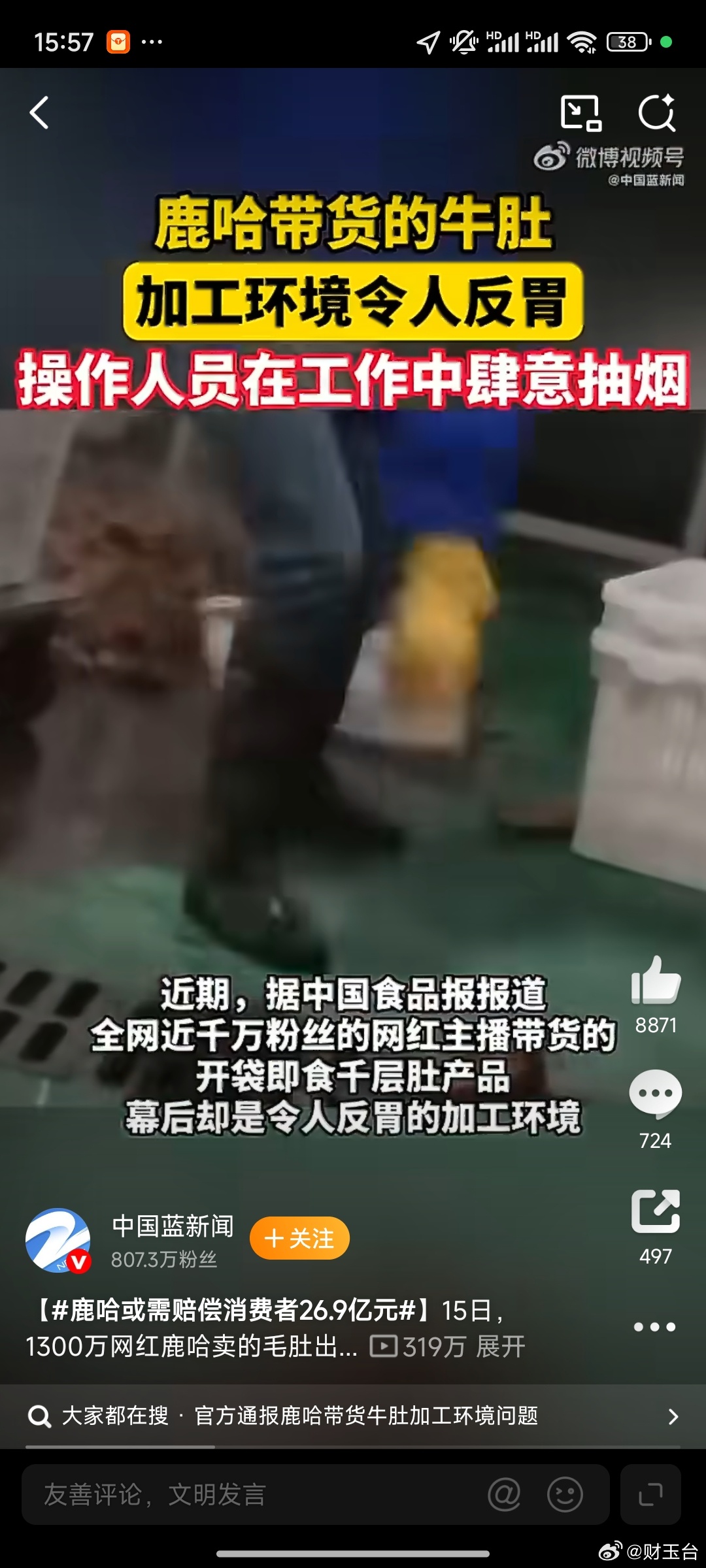鹿哈或需赔偿消费者26.9亿元 315这记重锤,砸醒的不只是一个网红,更是整个直播带货行业。靠模仿蹭流量、靠低价冲销量,却把食品安全和消费者权益抛在脑后,车间脏乱、违规添加、虚假宣传,3000万单背后是千万家庭的信任被践踏。26.9亿不是数字游戏,是法律底线的重量。主播赚得盆满钵满时,更要扛起选品、审核、售后的全链条责任,嘴上喊着“假一赔三”,出事就不能甩锅厂家、装聋作哑。流量可以变现,但良心不能折价;人气可以炒作,但口碑不能造假。支持依法追责、全额赔付,也期待监管持续发力,让网红带货不再是“法外之地”,让每一份订单都安全、每一句承诺都算数。