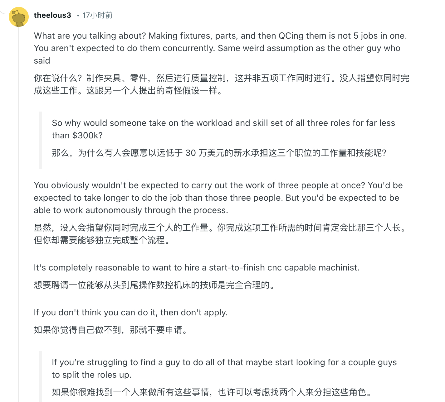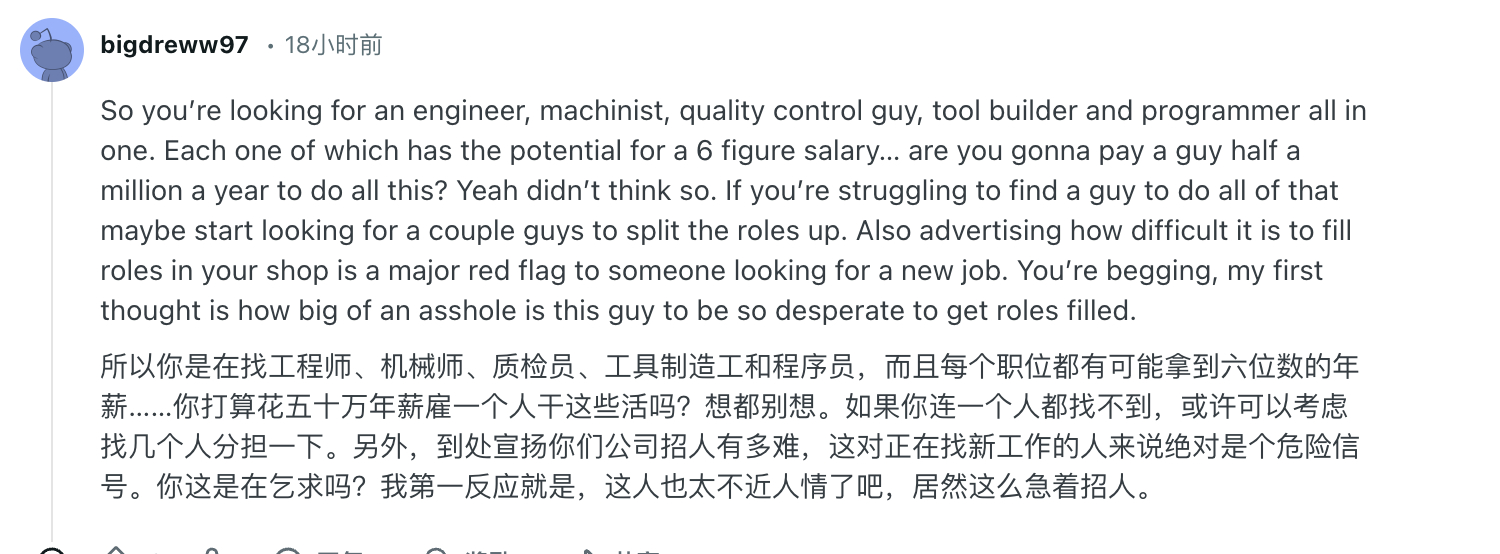 在国外的社交平台上,一位来自 英格兰东北部(North East England) 的机加工车间老板发的招聘帖。他说自己很难找到真正合格的 Mazak 车床操作工。但实际上他的要求是多面手。“我在招聘,但找人真的把我折磨惨了。有的人会用车床,但不会 Mazatrol;有的人会 Mazatrol,但没有在快节奏分包车间积累的实战经验。”