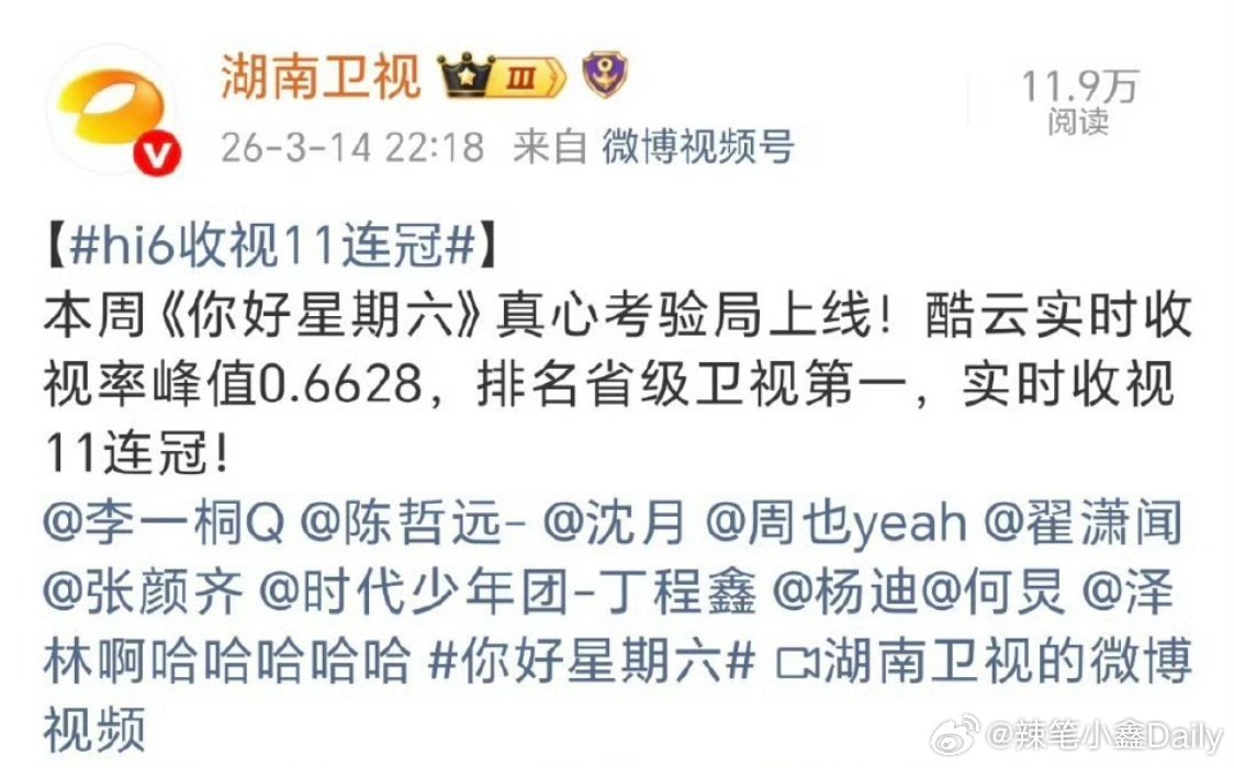 陈哲远也太厉害了吧,昨天参加湖南卫视《你好星期六》,收视率又登上卫视第一!