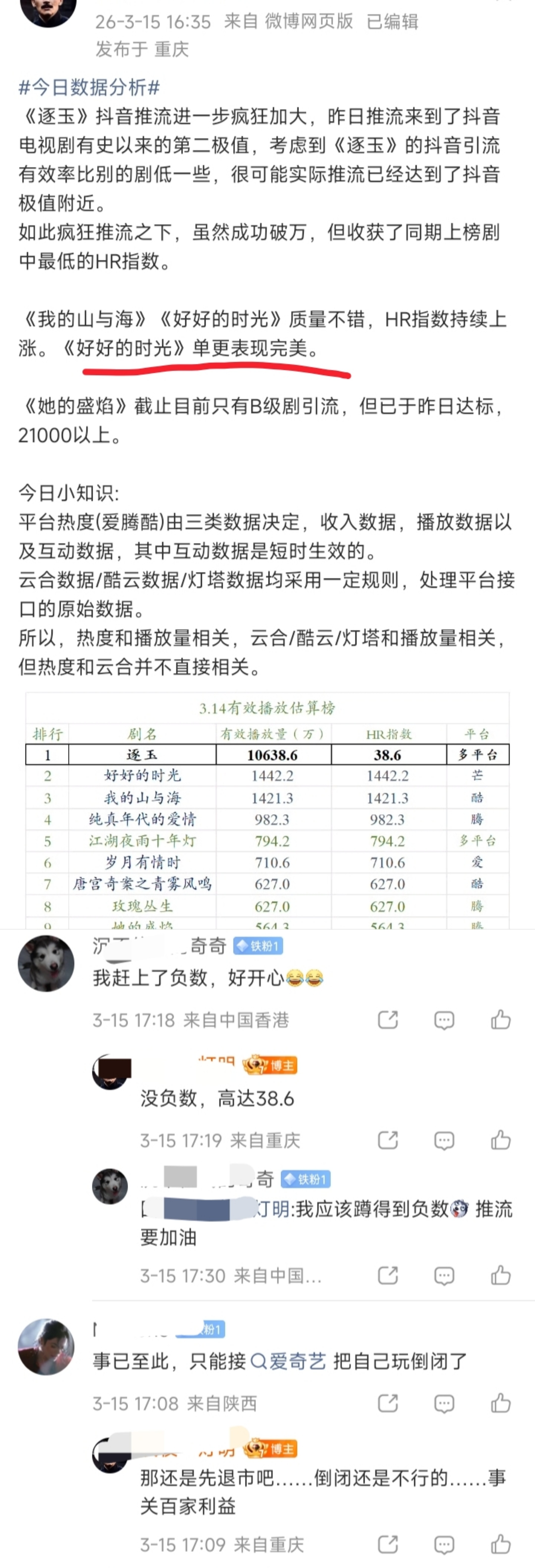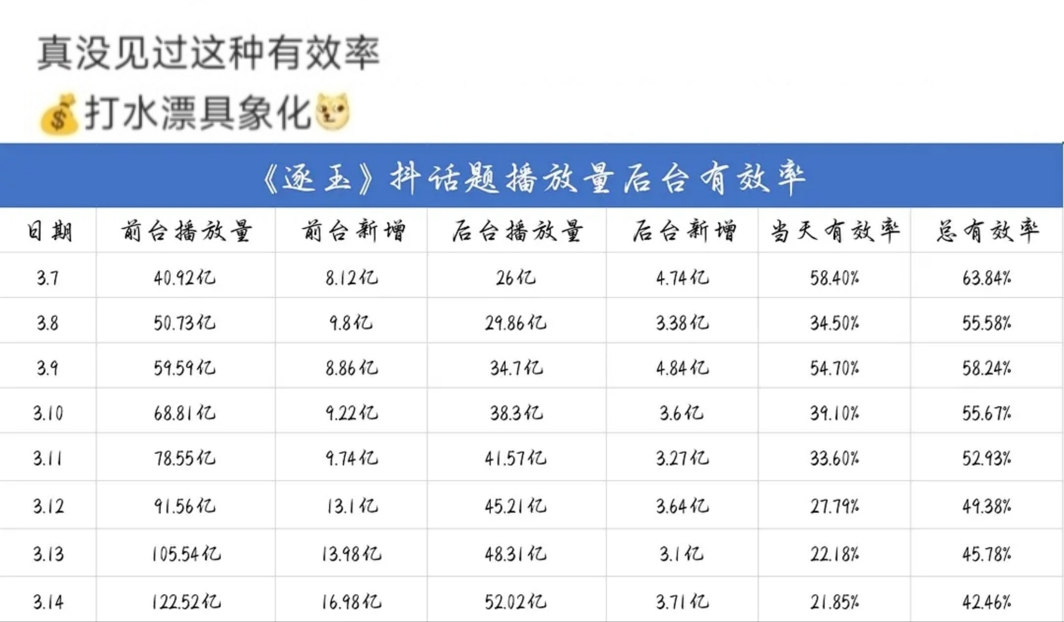 结合P1看懂了,就是说逐玉在抖推流非常大并且与日俱增,但是后台投流有效率却非常非常低并且一路下降。
