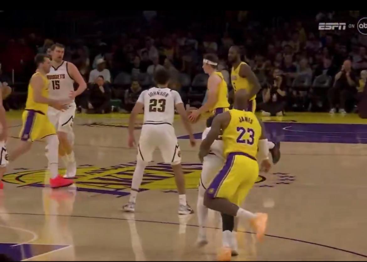 穆雷是这样和詹姆斯缠斗被罚下场的。 穆雷打了36分钟,5分6板6助攻,正负值-9,全队最低。 掘金和湖人加时,最后被东契奇给绝杀了。