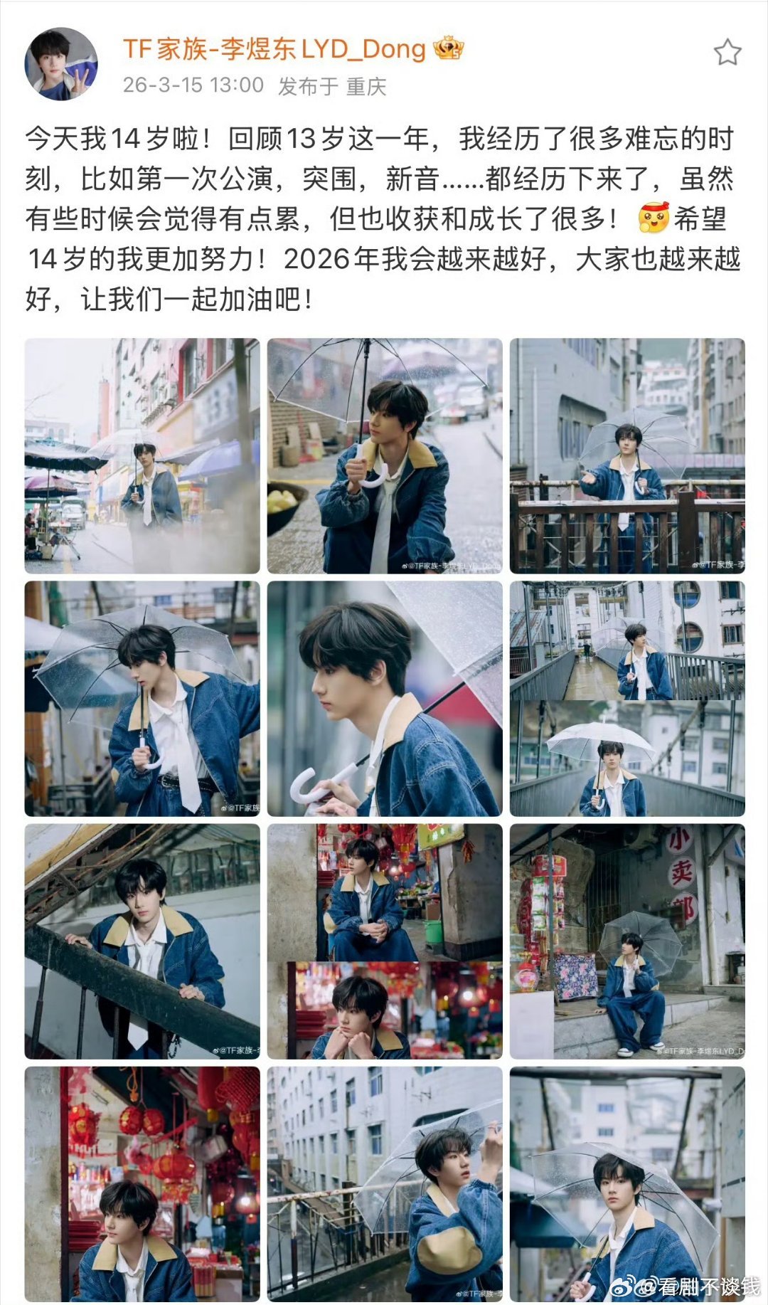 李煜东十四岁生日快乐新的一岁天天开心,越来越帅气