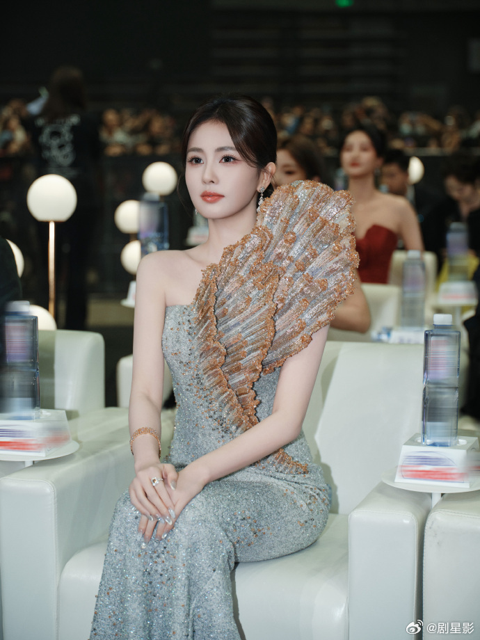 白鹿银灰色闪片鱼尾裙、白鹿从深海里走出的人鱼公主 白鹿这一身太耀眼了,好漂亮好像深海里走出的人鱼公主,银灰色闪片鱼尾裙,单侧巨大的金色扇形立体刺绣像展开的贝壳太美了