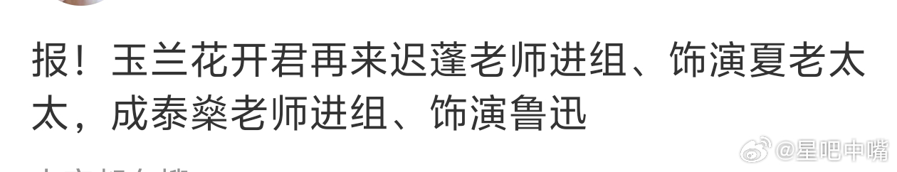 玉兰花开君再来吃瓜🍉!迟蓬和成泰燊进组:《玉兰花开君再来》,分别饰演夏老太太和鲁迅!