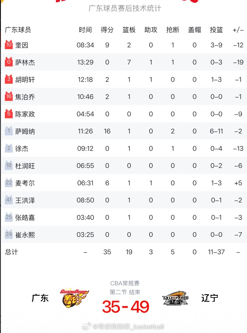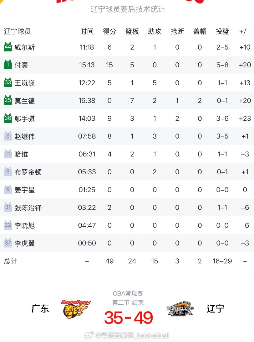 辽宁男篮抓住开局,半场领先14分,广东宏远本土球员上半场只拿了4分,外援贡献31分广东男篮vs辽宁男篮