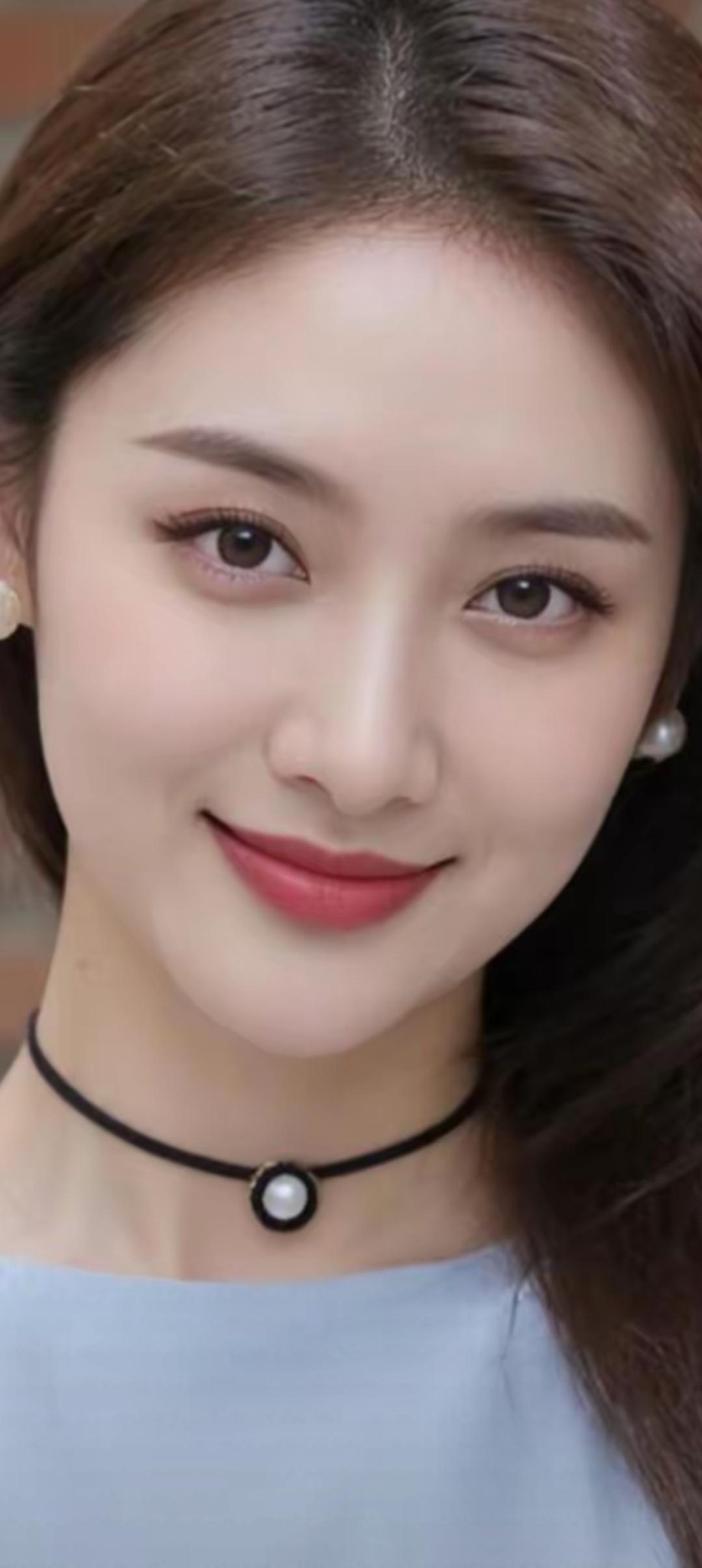 温柔甜美的笑容,珍珠耳环和黑色颈链点缀,尽显优雅气质。