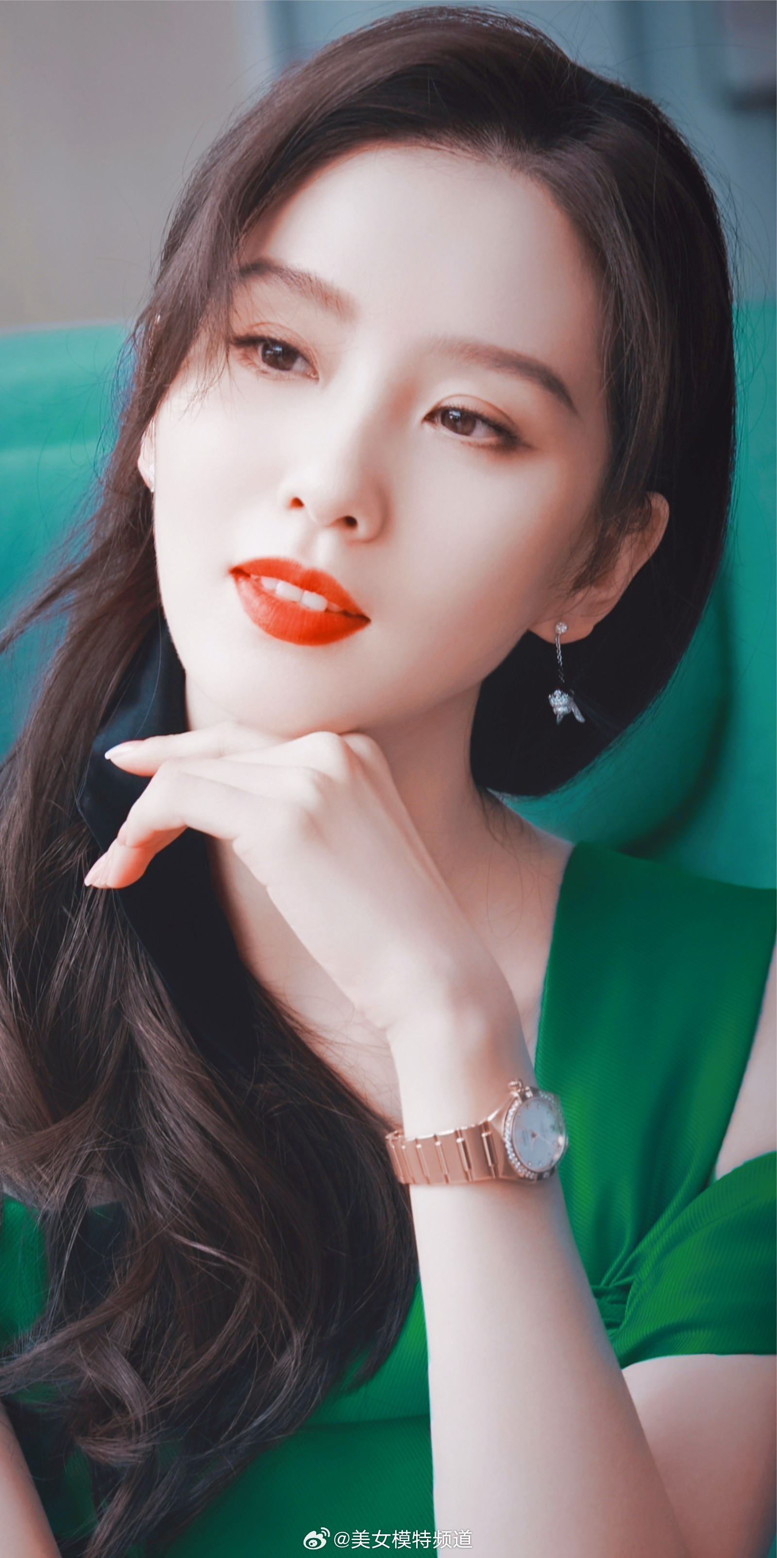 刘诗诗卷发红唇