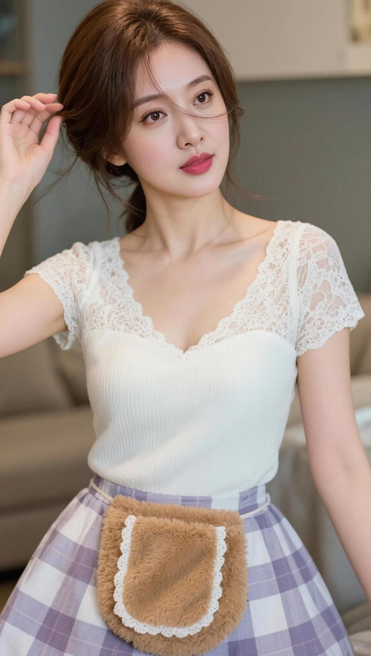 AI蕾丝居家照随变ai随便玩白衬衫搭配精致妆容证件