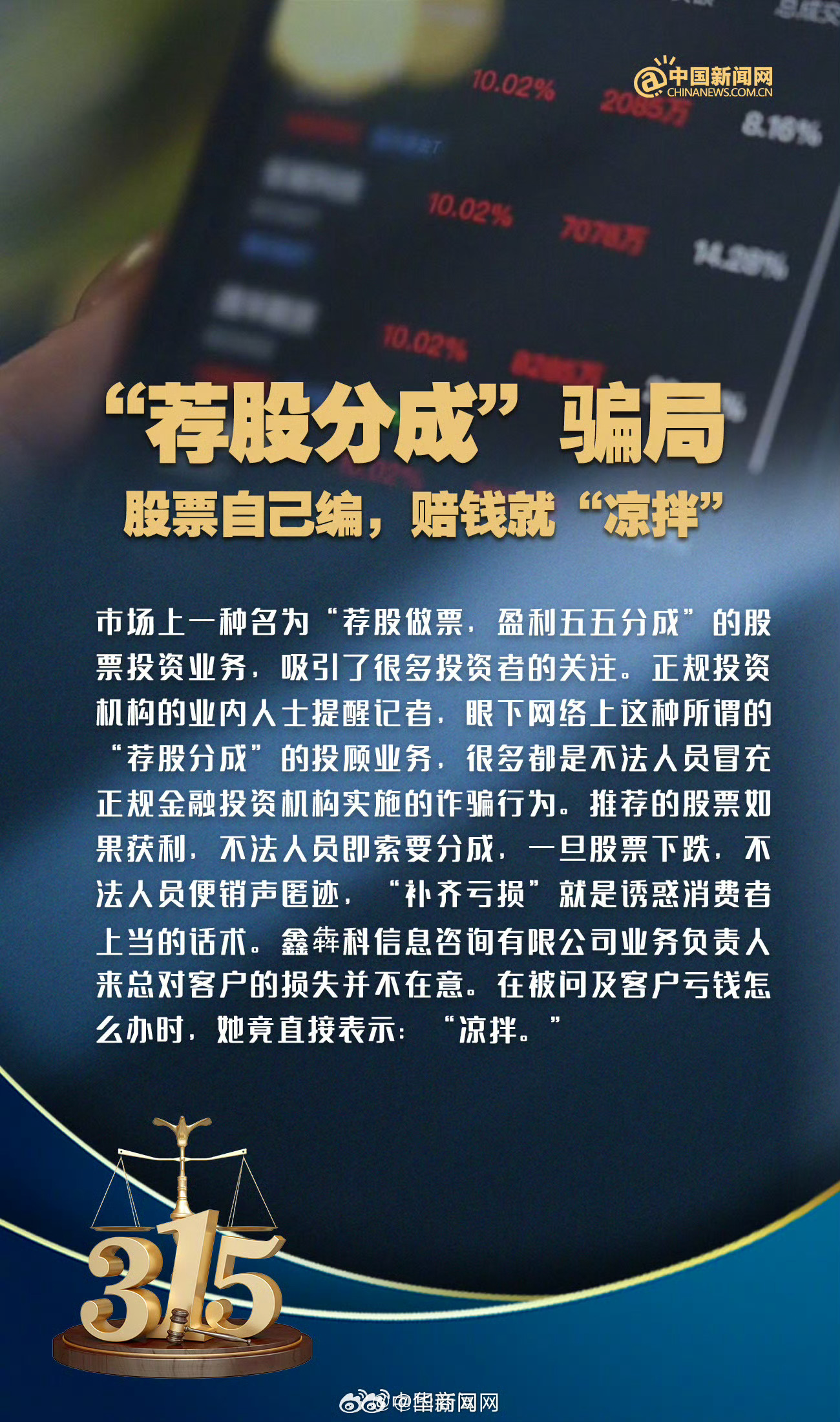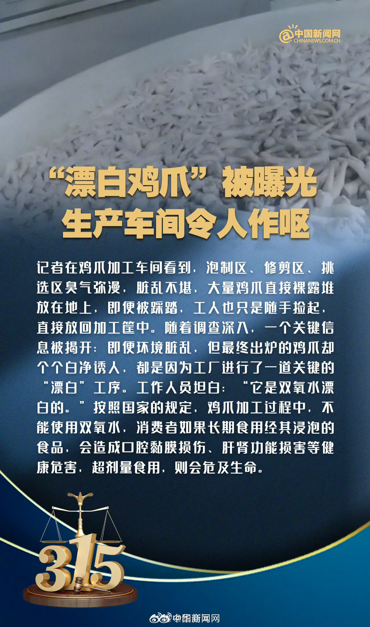 【#市监总局彻查315曝光违法行为#】#市监总局启动应急处置机制# 针对中央广播电视总台“3·15”晚会曝光的“漂白的鸡爪”“增高营销的套路”等涉及市场监管领域的违法行为,市场监管总局迅速启动应急处置机制,部署开展执法行动,查处情况将及时向社会公布。 #315骗假不留#