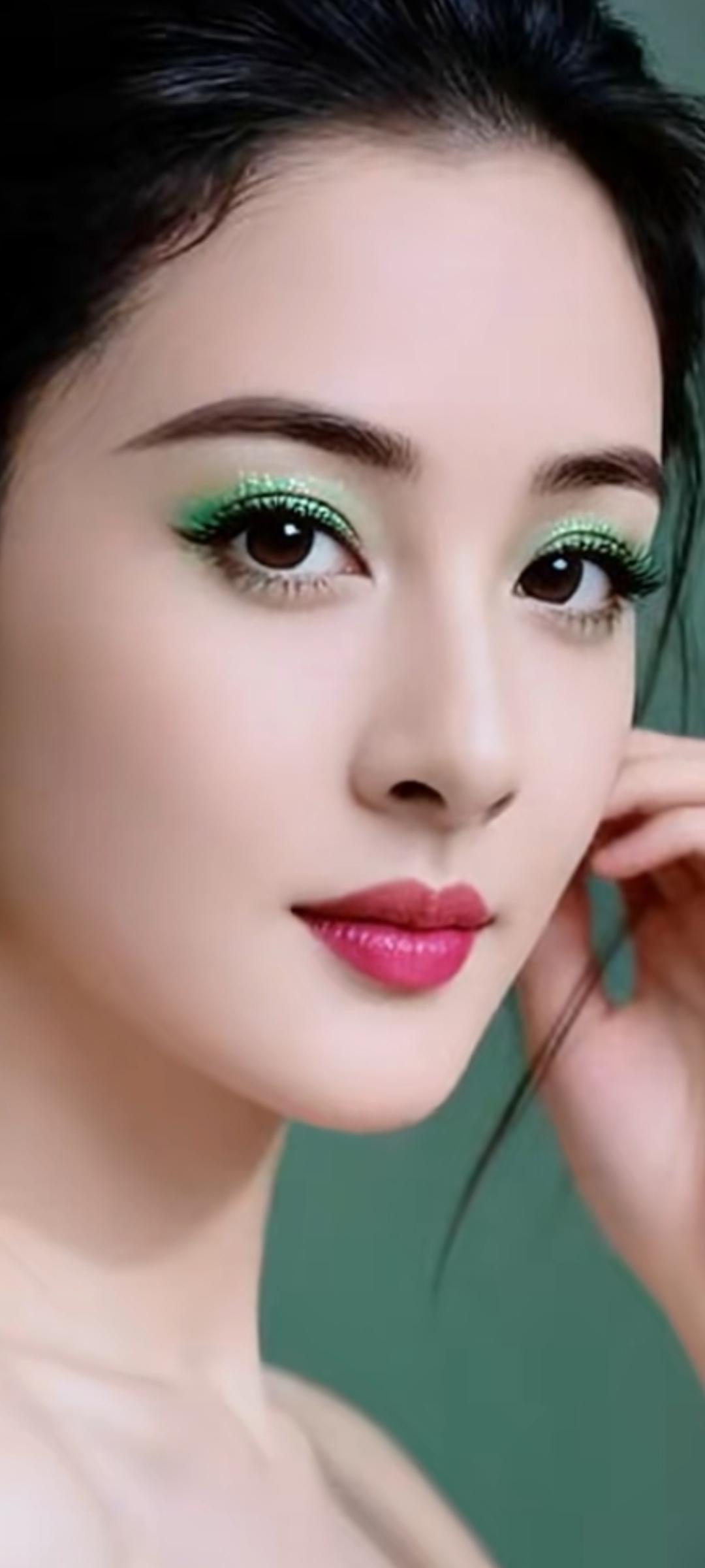 优雅古风妆容,惊艳的绿眼影,复古耳饰,古典美!