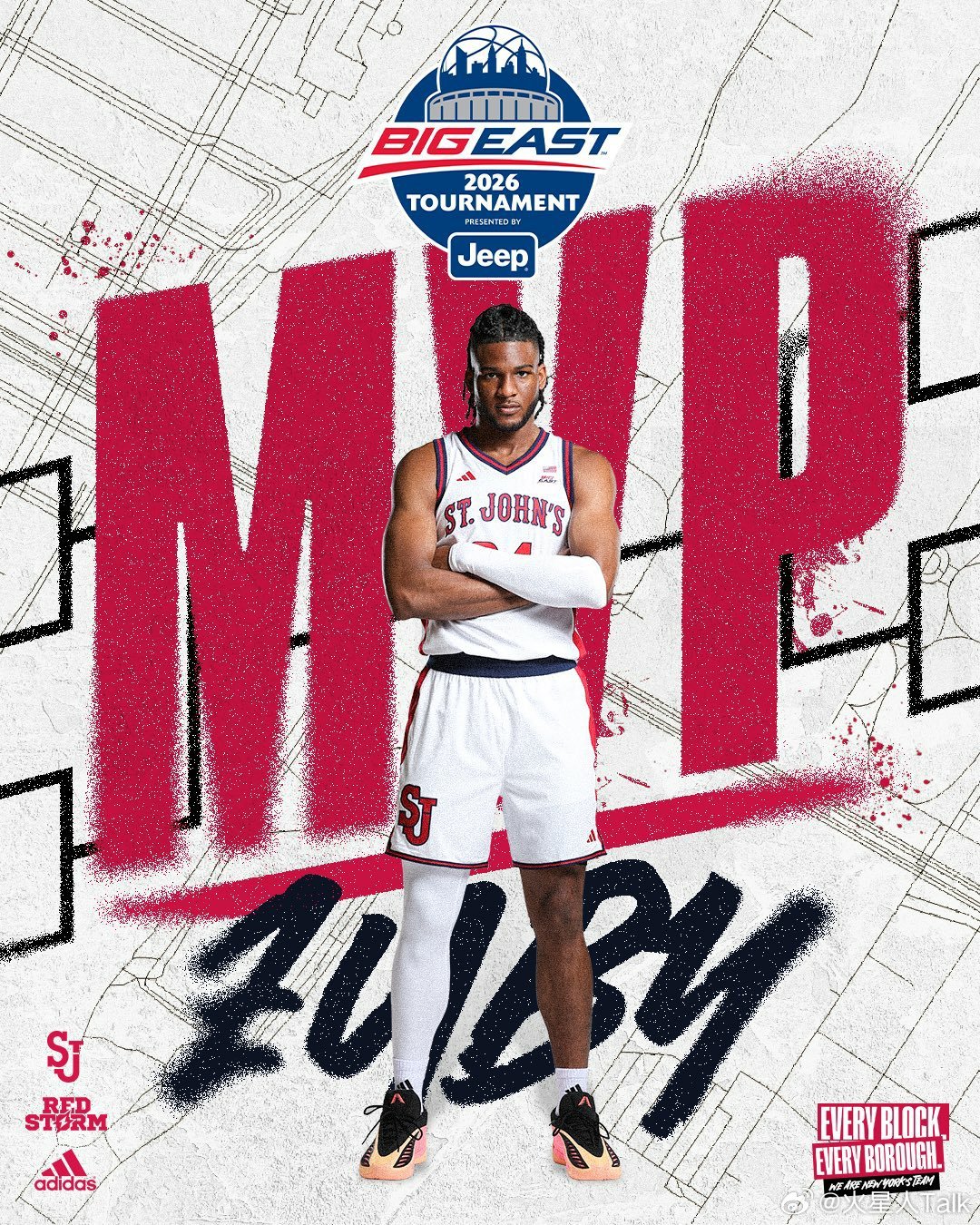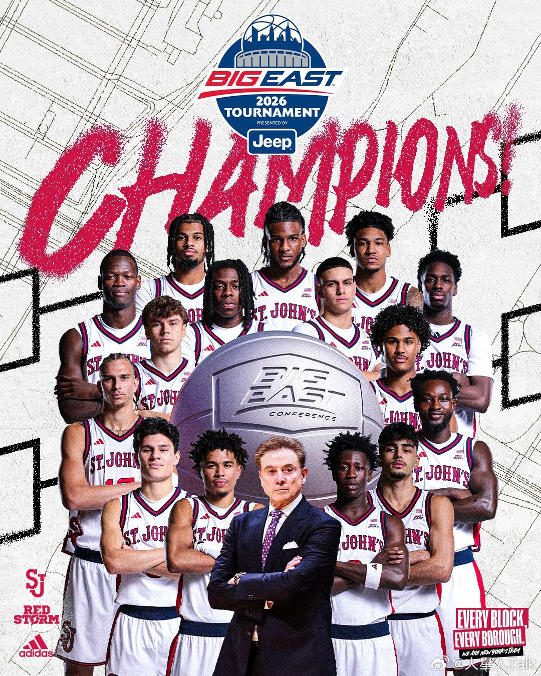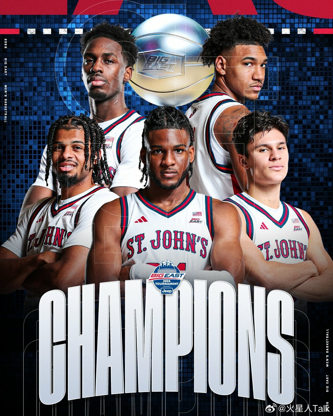 NCAA男篮 2025-2026赛季Big East联盟锦标赛决赛圣约翰大学大胜康涅狄格大学,卫冕成功夺得校史第五个锦标赛冠军,成为该联盟首支连续连续两年包揽常规赛冠军和锦标赛冠军的球队。红风暴Zuby Ejiofor荣获MVP,11中7得到18分9篮板3抢断7封盖。Bryce Hopkins9中7得到18分5篮板。Oziyah Sellers14分。哈士奇Tarris Reed Jr是全队唯一得分上双的球员,17中7得到17分7篮板。Alex Karaban7分5篮板5助攻。Solo Ball7中1得到3分。