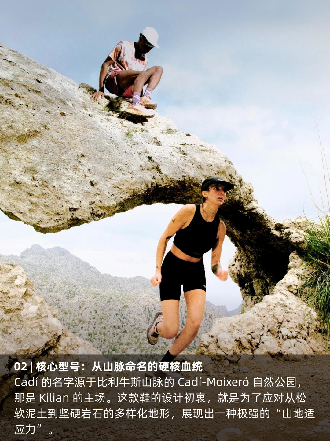 Cadí 的名字源于比利牛斯山脉的 Cadí-Moixeró 自然公园,那是 Kilian 的主场。这款鞋的设计初衷,就是为了应对从松软泥土到坚硬岩石的多样化地形,展现出一种极强的“山地适应力”。