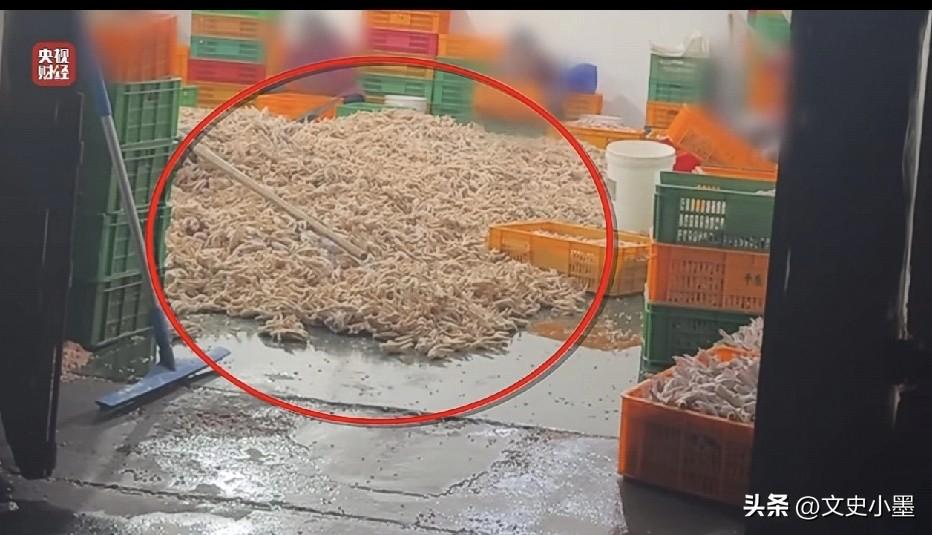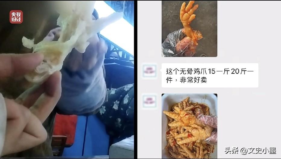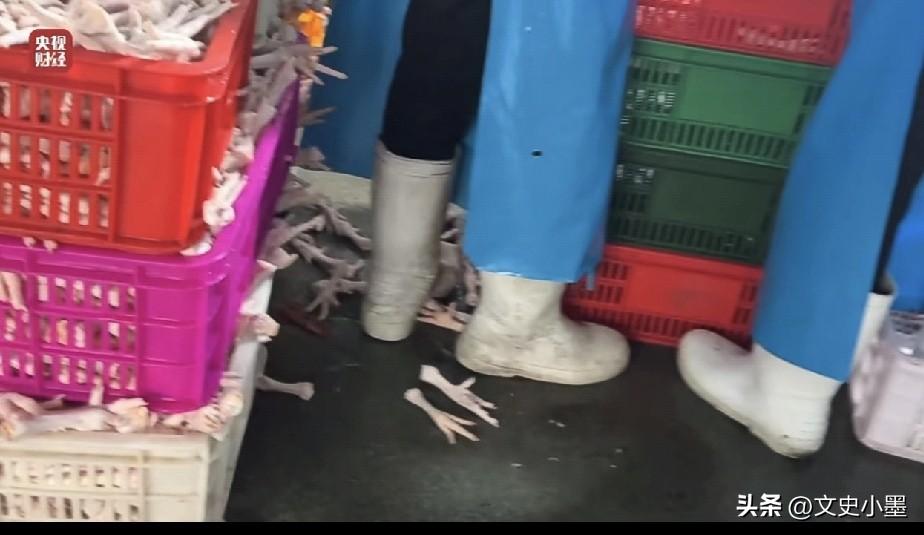 央视315晚会曝光的鸡爪制作流程,看了让人瞠目结舌!市场上低价贱卖(15元一斤)的鸡爪原来藏着这么多猫腻! 记者卧底某鸡爪生产厂内发现,这里面的生产环境用脏乱差来形容一点都不为过,车间地面充满污渍,散落在地的鸡爪随处可见,有的甚至被生产工人踩在了脚底下,即便是这样,生产出来的鸡爪仍然十分白净! 通过进一步调查,记者发现这些鸡爪之所以肉质饱满,颜色非常的白净,是因为他们用含量35%的双氧水浸泡处理过这些鸡爪,然而国家明令禁止双氧水不能用于浸泡鸡爪,因为消费者如果长期食用这些用双氧水浸泡过的鸡爪,轻则口腔粘膜受损,严重的危及生命! 生产这些鸡爪的工人说了句实话,他们从来都不吃这些鸡爪,也建议记者少吃或者不吃!因为他们非常清楚这些鸡爪是怎么生产出来的! 这里面还有一个问题,像双氧水这些化工类产品为什么会流向食品加工行业?生产厂家在售卖的时候难道不知道别人用来干什么吗? 记者顺藤摸瓜找到了售卖双氧水的厂家,工作人员告诉记者他们只管卖出去,至于别人用来做什么他们管不着!有的厂家甚至在包装上做文章,贴上生活用双氧水的标签瞒天过海! 这些鸡爪生产厂家和双氧水生产厂家都是利欲熏心,被利益蒙蔽了双眼,为了赚钱不择手段,完全不顾消费者的健康安全,像这样的厂家应该被彻底整治! 目前这些鸡爪的生产厂家和提供双氧水的厂家已经被相关部门严厉查处!其实,这些公司的行为已经不是存在一天两天了,相关部门还是要把工作做在平时,加大检查力度,为消费者营造一个安全健康的生活环境!