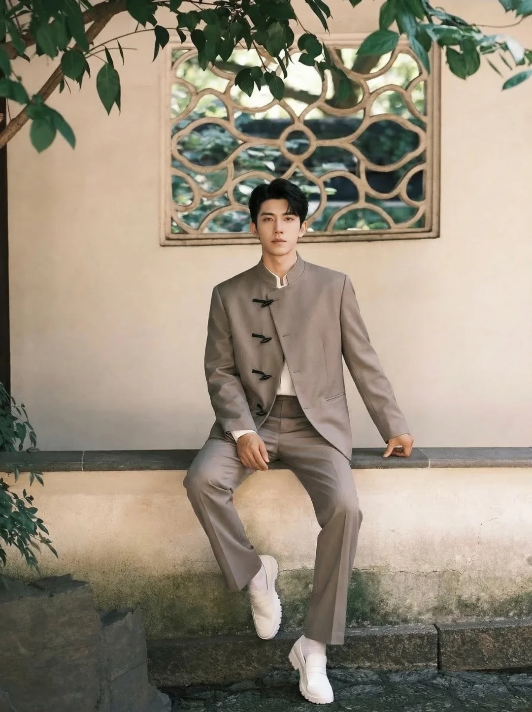 视觉钩子:立领+盘扣的细节 🏮 这件西服把传统西装的翻领改成了利落的立领,配上精致的松紧扣。既保留了西装的挺括,又有东方儒雅的气质。走在订婚宴上,长辈看了夸稳重,同龄人看了问链接。显高心机:利落短款裁片 📏 像我们这种平时不怎么穿正装的,最怕衣服拖沓。这套的版型收腰收得恰到好处,配上同色系西裤,视觉上重心上移。 拍照时根本不需要修图,175也能穿出那种“贵公子”的既视感。这种新中式带来的中式浪漫”,跟准新娘的旗袍或秀禾服简直是神仙适配,出片效果直接拉满。📽️穿腻了千篇一律的西服,这种有筋骨、有内涵的新中式,才是订婚宴的正确打开方式。