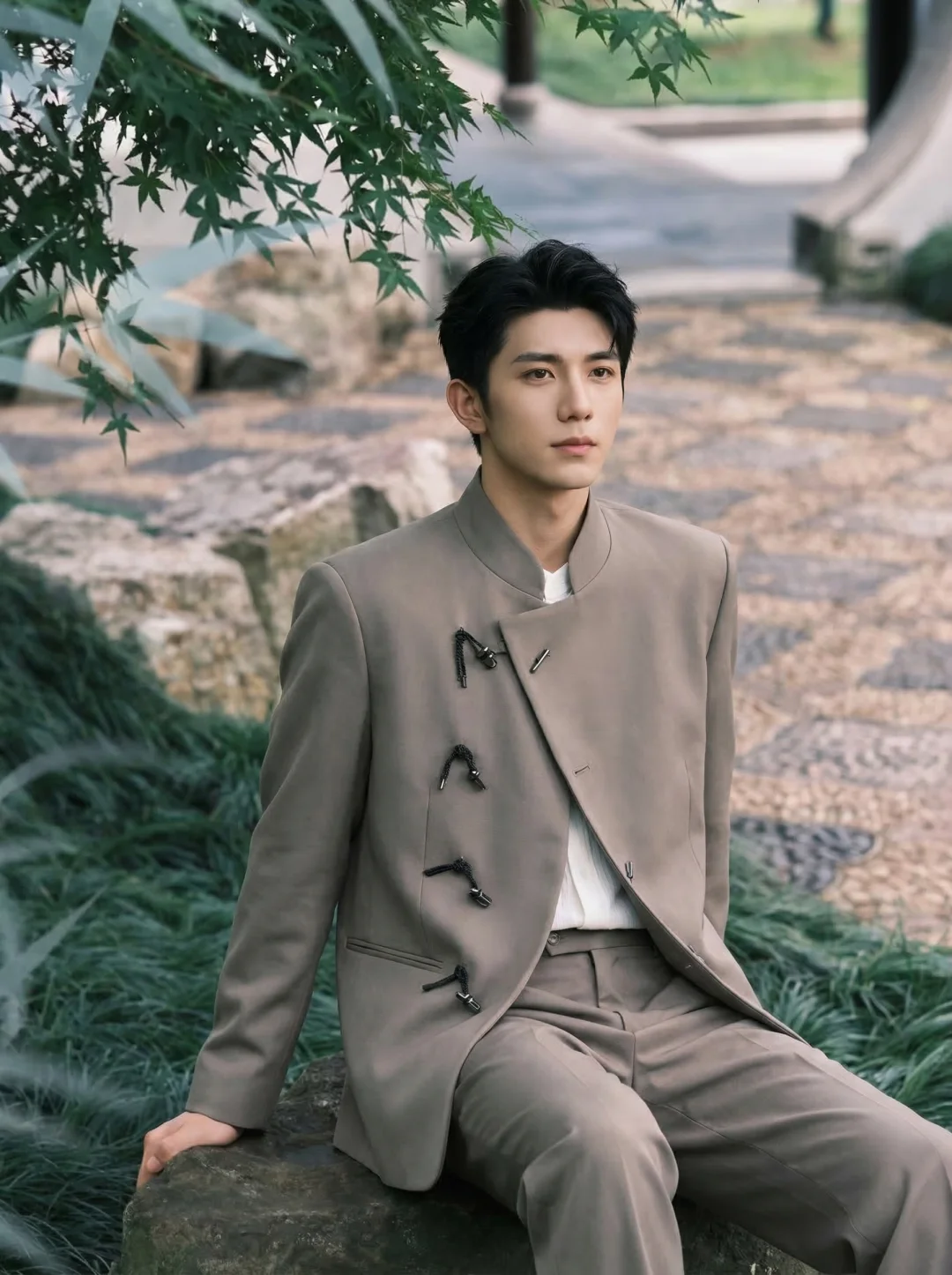 真的建议备婚的男生去试下新中式!别再执着于那种“房产中介式”的黑西装了,穿不好真的挺尴尬的。😅上周帮准新郎挑订婚服,一看看中这套“温润如玉”的松弛感,真的绝。👇
