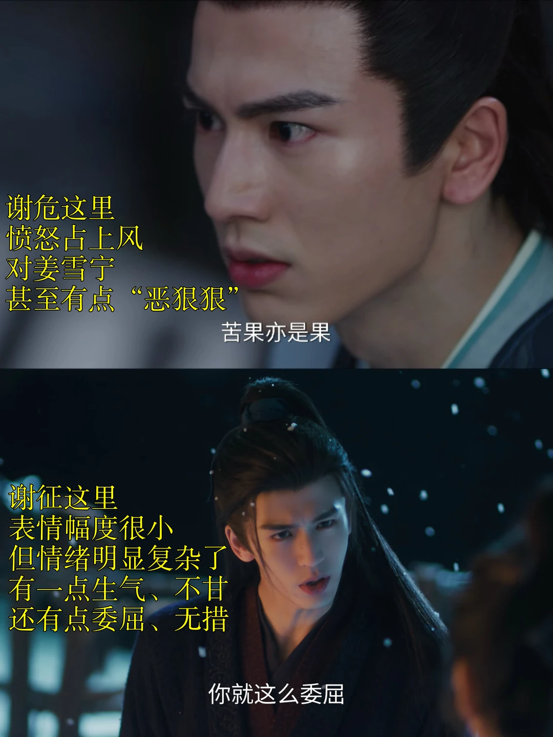 谢危的时候,能看出来年轻演员对肢体、表情的控制幅度不够娴熟;谢危又是个蛮复杂的人物,本来难度系数也高,整体完成得挺好了。