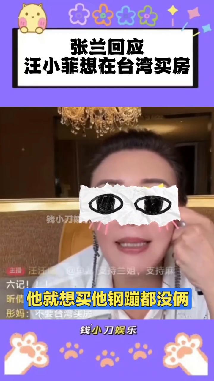 张兰回应汪小菲想在台湾买房。 钱小刀娱乐。 他拿钢镚买,真逗。放心吧他,他就想买,他钢镚都没俩。张兰回应汪小菲想在台湾买房,他拿钢镚买,他连钢镚都没俩。马小梅前脚生完汪小菲想在台湾买房,后脚张兰就说汪小菲想买也没钱,看来张兰母子之间还是不商量。感觉上次闹矛盾之后一直没和好。 不过不管汪小菲是不是真的兜里没钱,但在湾湾买房确实没有必要。同一个坑,汪小菲不会还要掉两次吧。