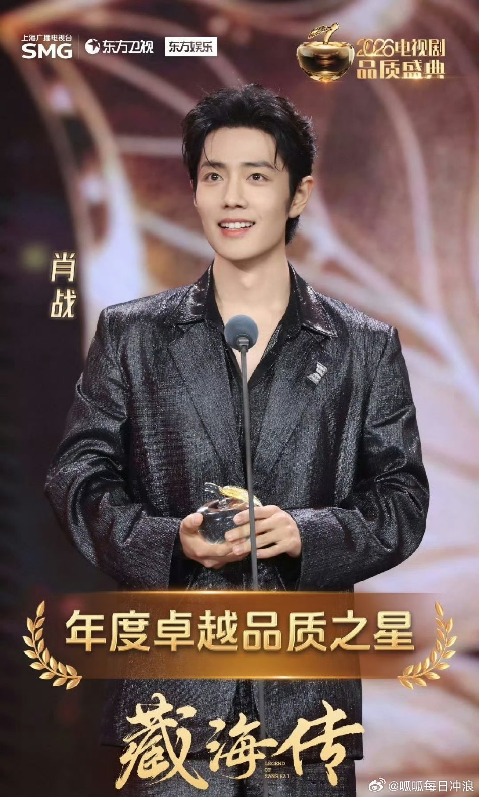 【肖战感谢品质盛典】肖战回应获品质之星3月15日,发文:感谢SMG、感谢东方卫