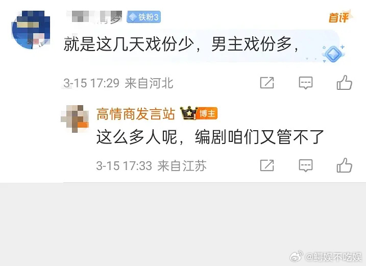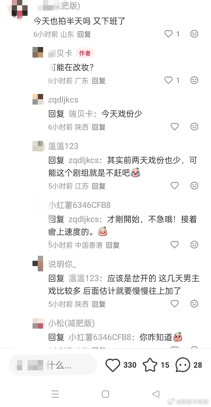 沈月粉丝吐槽沈月新剧戏份少男主戏份多,可是除了昨天今天她和男主一样都拍了7个小时,没惨硬卖