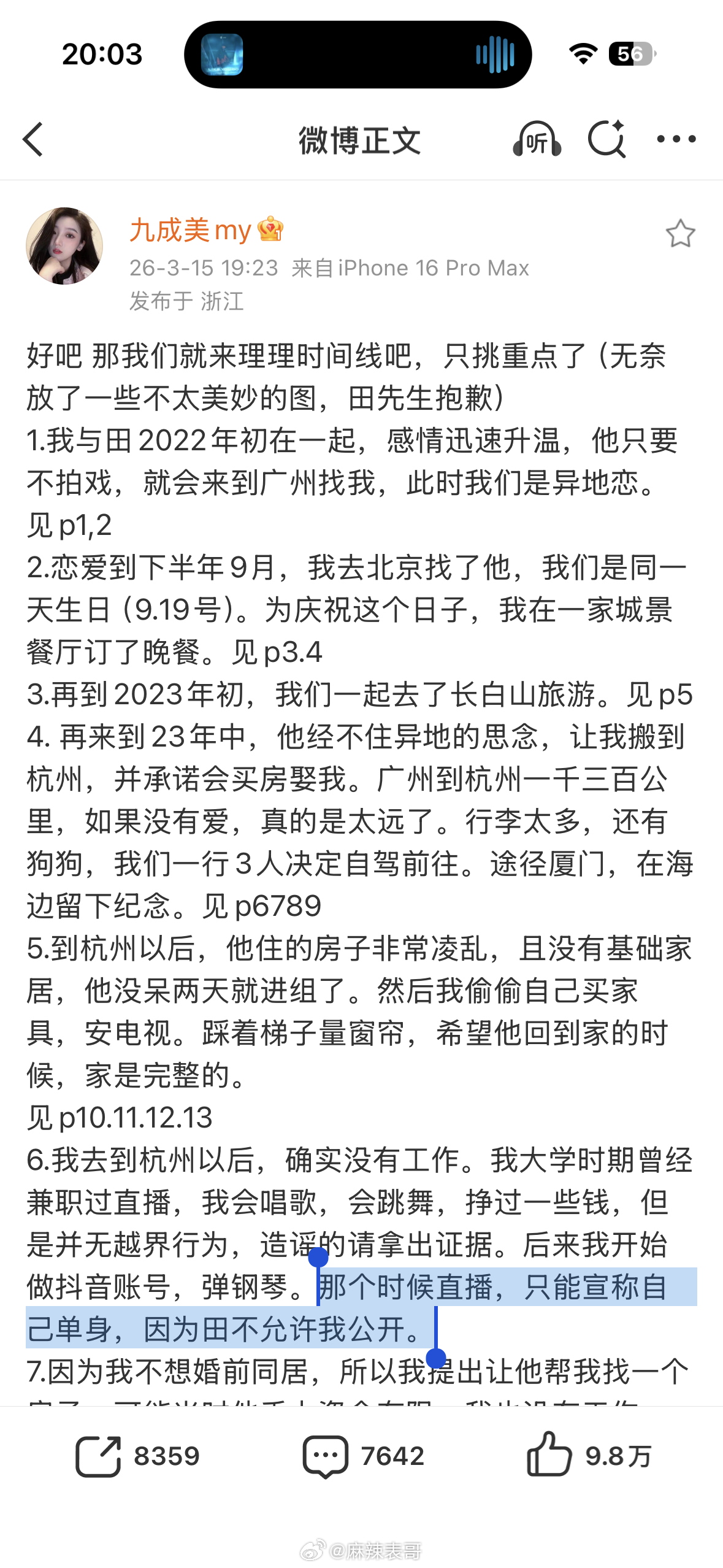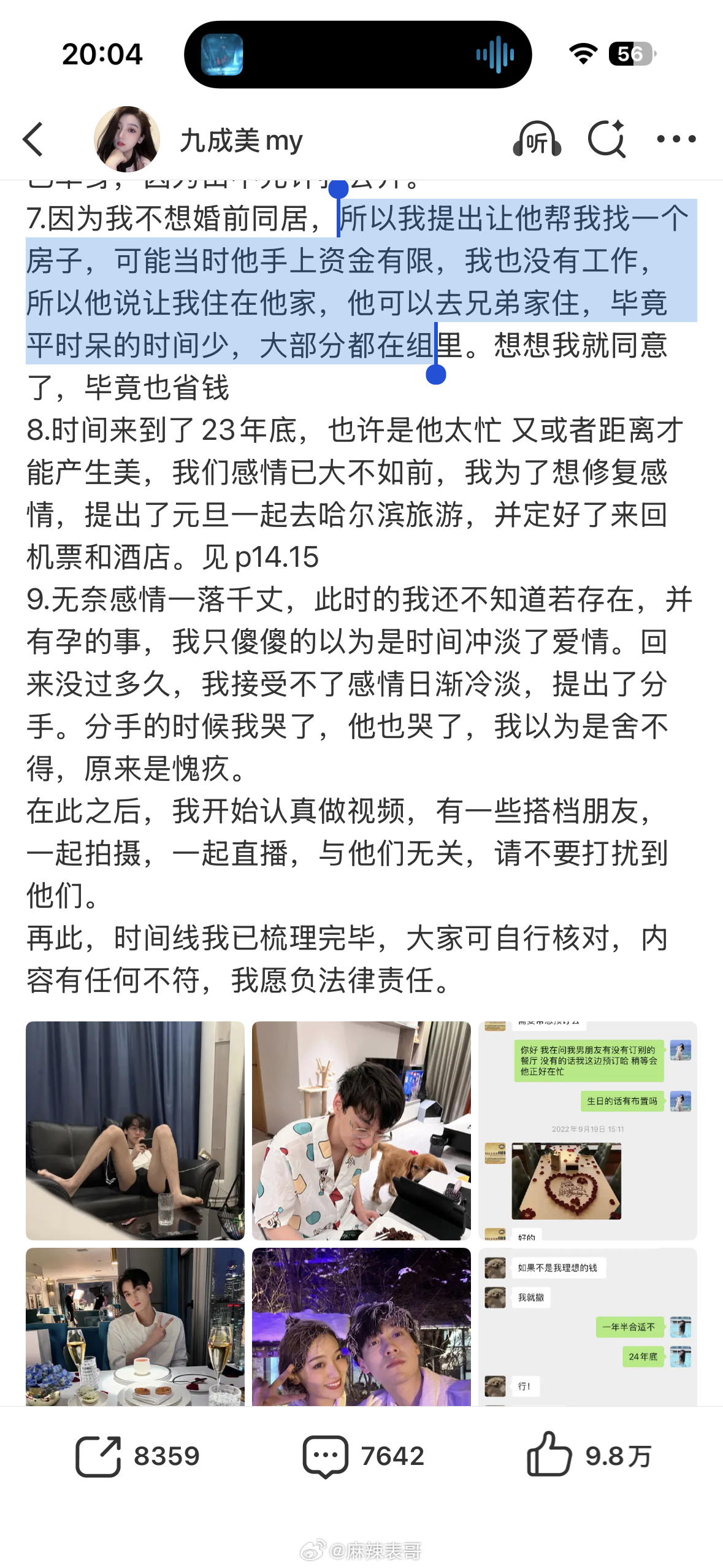 1、2022年初在一起,23年年底突然降温,24年分手,那时候不知道若若存在,九成美还以为是感情淡了