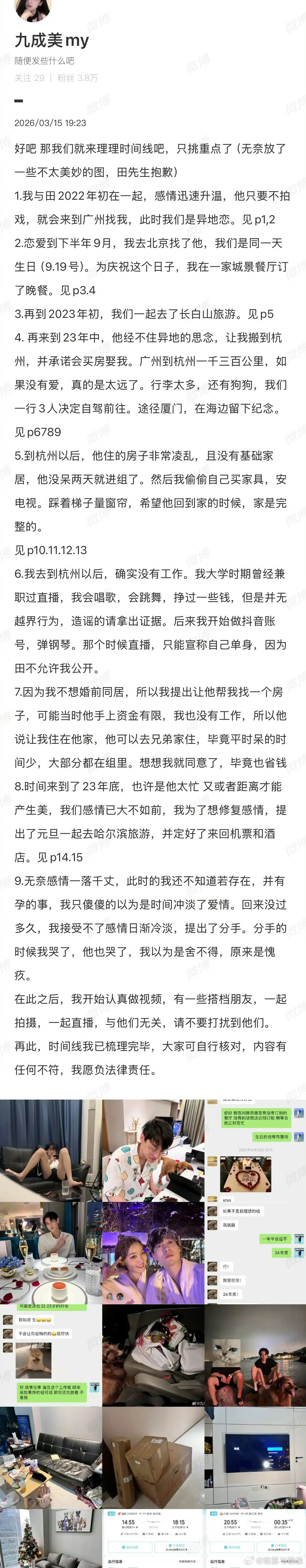 田栩宁九成美时间线九成美发了和田栩宁在一起的时间线 这瓜越吃越不明白了 到底是真的假的
