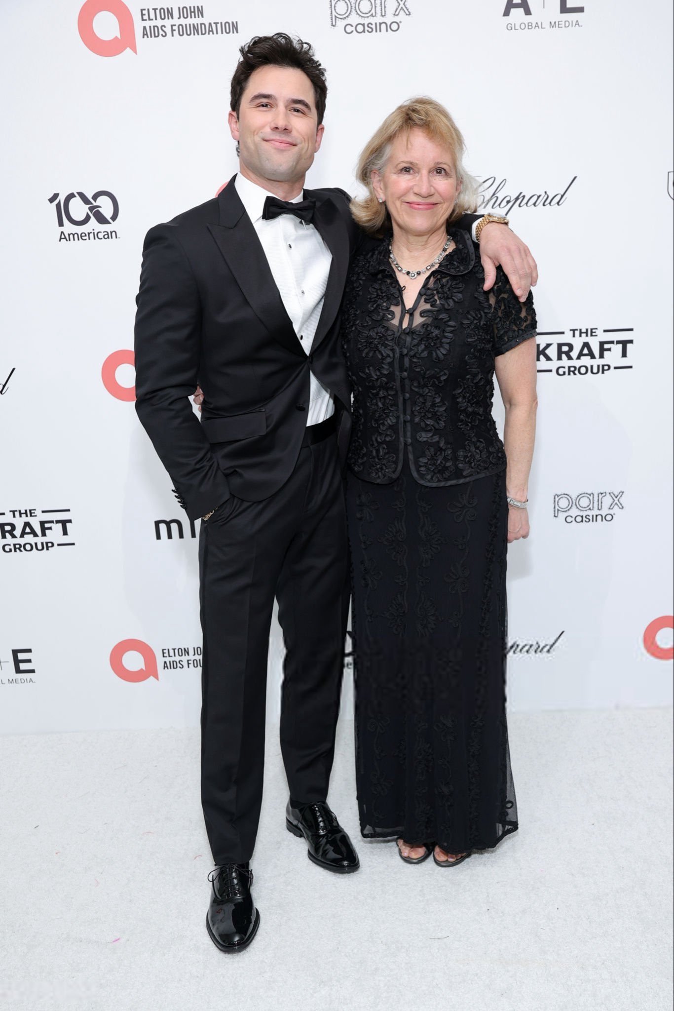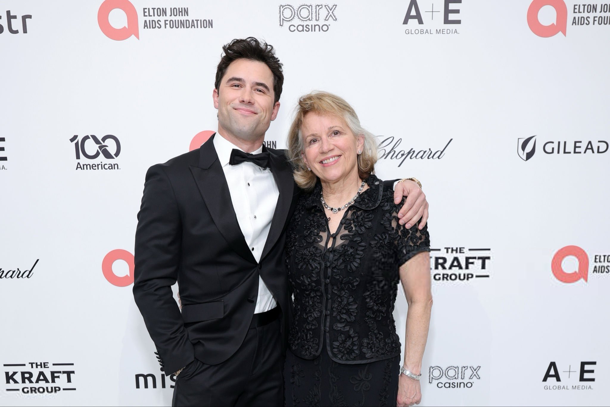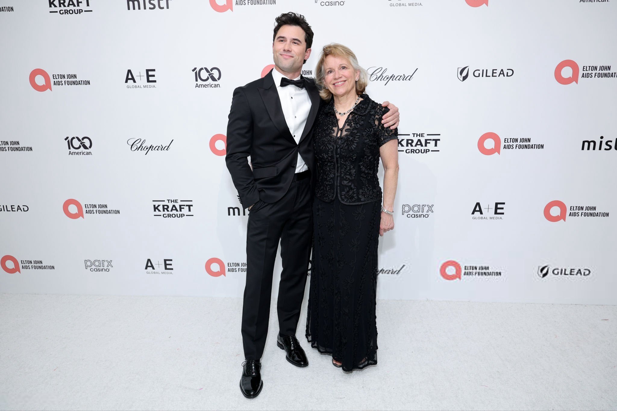 怎么你也把胡子剃了 Robbie G.K. 带妈妈Elizabeth Kuntz出席爱滋病基金会奥斯卡奖派对