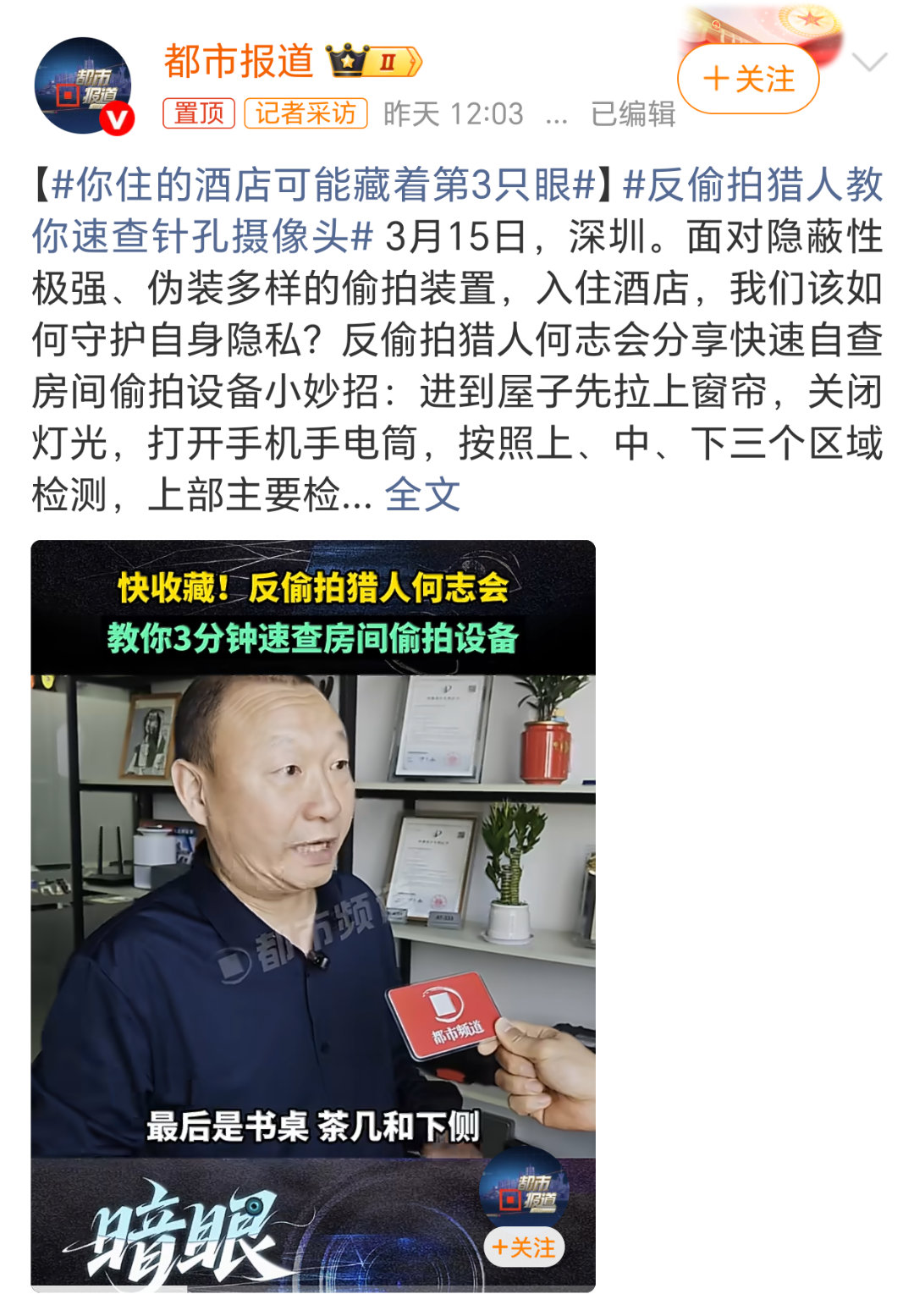 早上好呀老铁们,牛马今天继续早班机出差。每年住酒店的次数少说也得有个大几十次吧,这种手机手电筒检测隐藏摄像头的方法到底管用不?你住的酒店可能藏着第3只眼