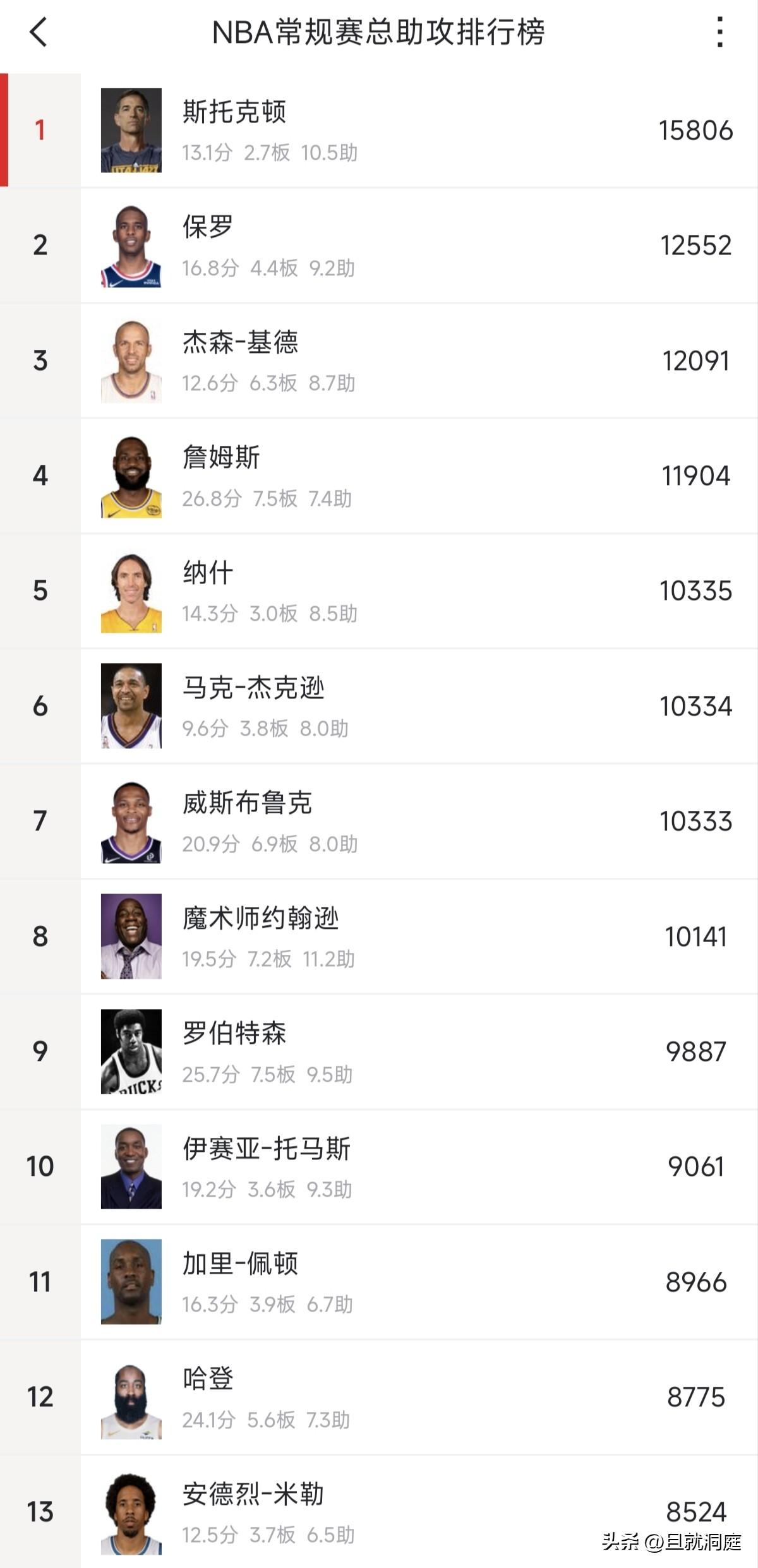 历史第五,应该就在今天完成!目前威少总助攻距离历史第五的纳什只差两次,因为今天有国王比赛,如果威少不缺席的情况下完成三次助攻是没有任何问题的。 因为保罗前段时间退役,所以詹姆斯现役第一,威少排名第二。詹姆斯还有机会超过基德排名历史第三,想超过保罗还是有难度,但也存在理论机会。 威少想要超过詹姆斯或者基德还是有很大难度,除非是威少还能打四个赛季以上,否则不太可能了。所以排名助攻榜历史五算是定格了。