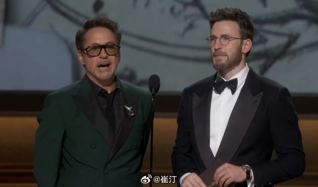 2026奥斯卡获奖名单 第98届奥斯卡,“钢铁侠”小罗伯特·唐尼、“美队”克里斯·埃文斯颁发最佳改编\原创剧本两个奖项。两人同框,显然是给年底《复仇者联盟5》预热。奥斯卡