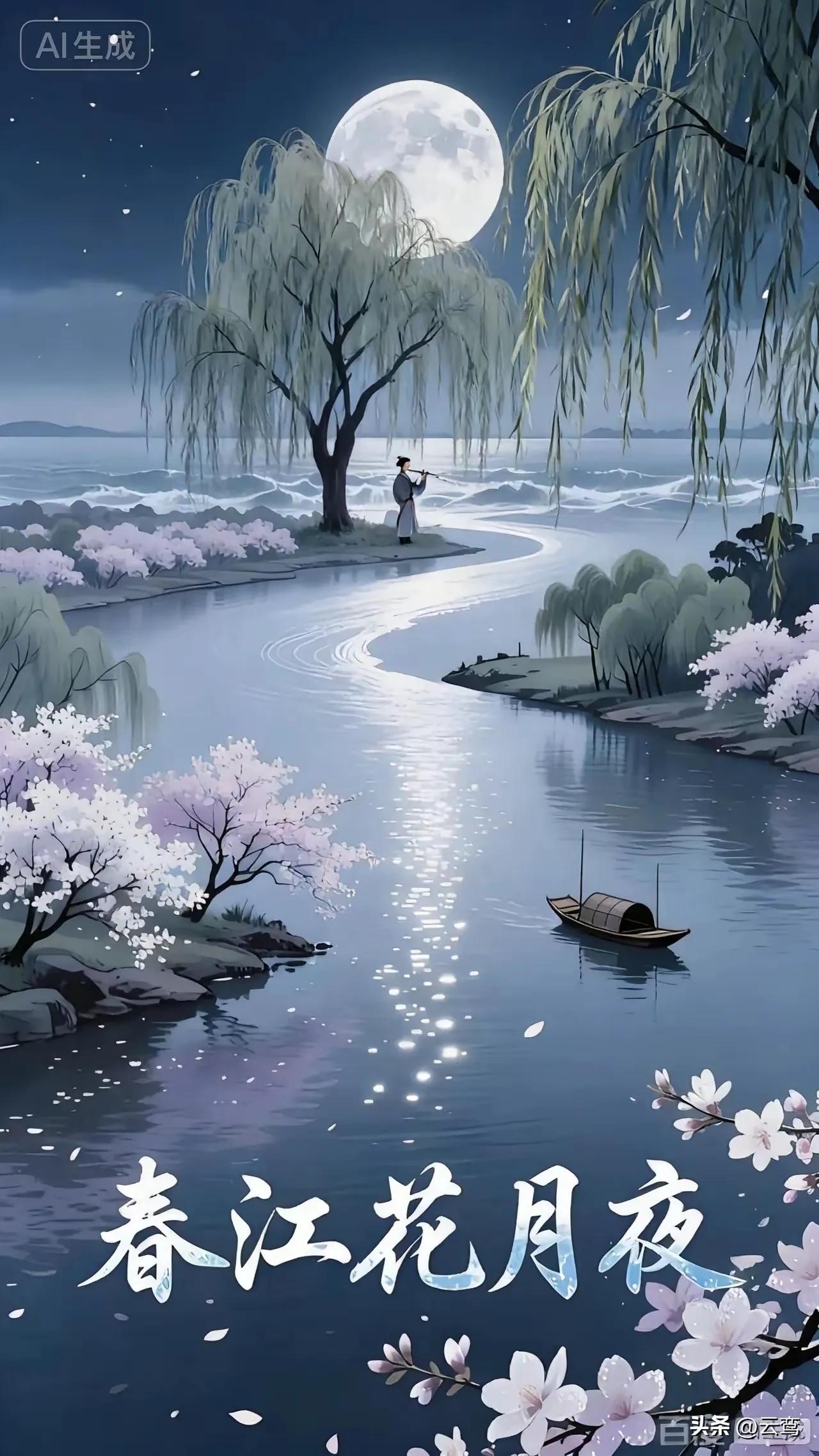 原创诗联首发 续诗《春江笛韵》 长亭柳色挽烟轻, 古寺钟声客梦惊。 独醉春江花月夜, 天籁渺渺闻笛声。