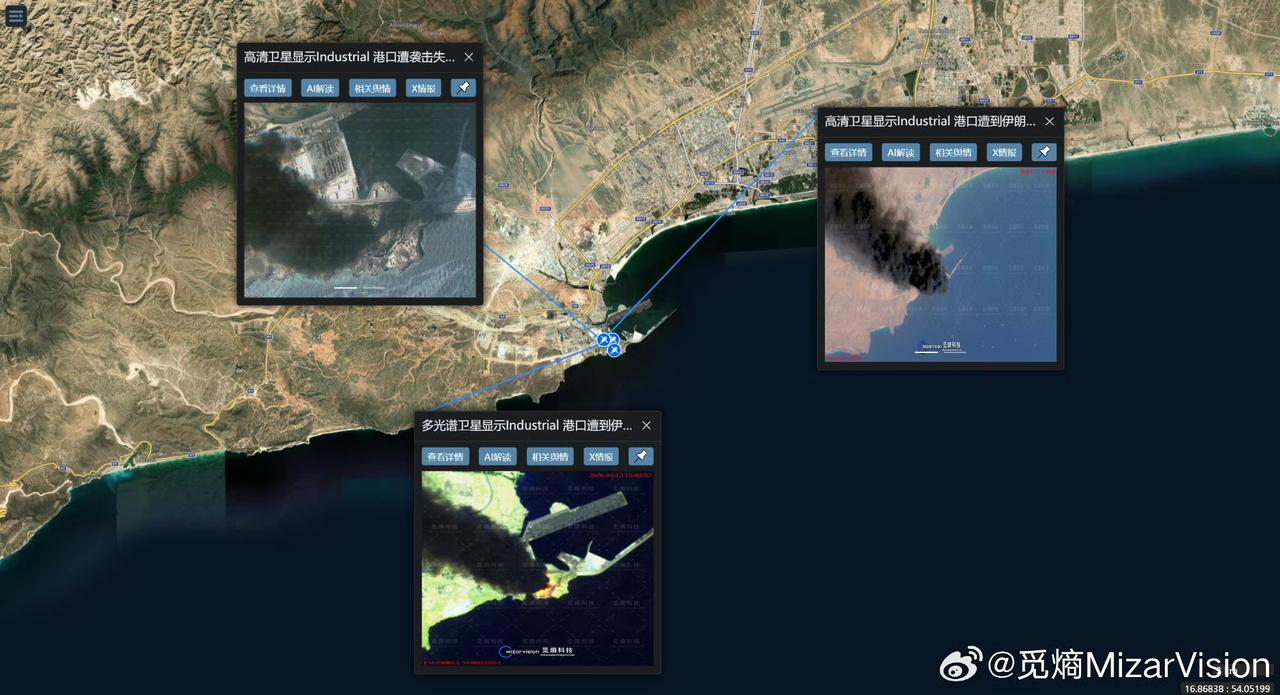 这组东大民企卫星图直观呈现了科威特舒艾巴港与阿曼萨拉拉港挨导弹后的状况:舒艾巴港可见明火与受损建筑,浓烟遮蔽集装箱堆场,目标直指驻港M军节点;萨拉拉港储油罐区燃起大火,巨型烟柱遮蔽港区,能源通道瘫痪。 波斯通过打击港口内军事与能源后勤节点,实施非对称打击,既避免全面战争,又精准消耗鱿撒战争成本,同时将冲突范围从波斯湾扩展至阿拉伯海,加剧全球能源供应链紧张,释放长期对抗的强烈威慑信号。