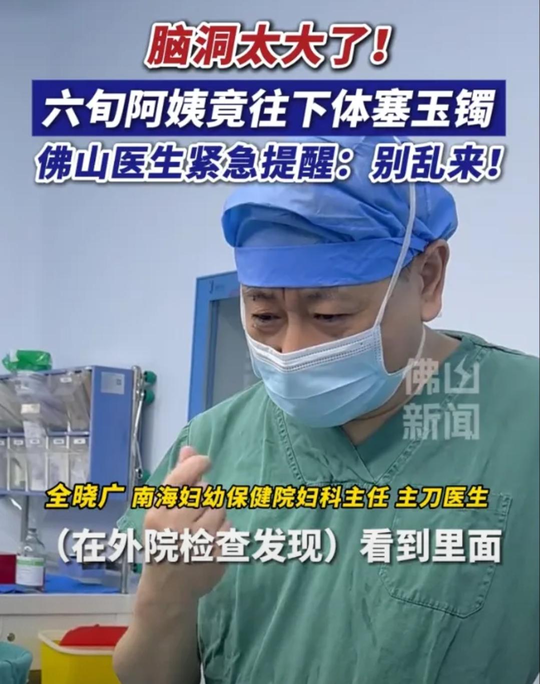 脑洞太大了!广东佛山,一65岁女子因下体不适就医,检查显示存在阴道异物,医生探查后竟发现异物是一只玉镯!经过了解,原来是女子为了图方便,将玉镯替代子宫托使用,最终玉镯嵌顿无法取出,只能通过手术取出! 广东佛山一位65岁阿姨近日因为下体持续坠胀不适,实在难以忍受才前往医院就诊,谁也没料到,这场看似普通的妇科检查,竟查出了一个让人跌破眼镜的情况。 医生通过检查发现她体内有异物,进一步探查后,才发现这枚异物竟然是一只玉镯,而这只玉镯之所以会出现在体内,背后的原因更是让人既无奈又好笑。 阿姨多年前就被查出有子宫脱垂的问题,一直以来都在使用子宫托缓解不适,可时间久了,她渐渐觉得子宫托使用起来太过麻烦,不仅需要定期取出来清洗,佩戴时也总觉得有些不便。 平日里勤俭节约又不爱麻烦人的她,某天看着家里闲置的一只玉镯,突然生出一个念头,这玉镯圆润光滑,大小形状看着和子宫托也差不多,说不定能替代子宫托使用,既省事又不用额外花钱。 抱着试试看的心态,阿姨将玉镯小心翼翼地塞进体内,刚开始确实没觉得有什么不适,反而觉得比使用子宫托方便不少,不用频繁拆卸清洗,也没有异物摩擦的不适感。 就这样她便一直用玉镯替代子宫托,这一用就是好几年,期间偶尔出现的轻微坠胀,她都以为是子宫脱垂的老毛病,从没放在心上,也从没想着去医院检查。 直到最近一段时间,阿姨的下体不适感越来越强烈,坠胀感变成了持续性的疼痛,甚至影响到了正常的走路和坐姿,晚上也常常因为不适难以入睡,实在熬不住了,她才在家人的劝说下,放下了心里的顾虑,前往医院就诊。 医生接诊后,根据阿姨的症状进行了详细检查,初步判断体内存在异物,而且质地坚硬,无法通过常规方式取出。 经过进一步的专业探查,医生才看清这枚异物的真面目——竟是一只已经出现裂纹的玉镯,由于在体内停留时间过长,周围的组织已经增生,将玉镯紧紧嵌顿,根本无法自行取出,只能通过手术才能将其取出。 手术过程很顺利,玉镯最终被成功取出,看着这只陪伴了自己好几年、如今已经开裂的玉镯,阿姨既懊悔又无奈,她怎么也没想到,自己一时图方便的举动,不仅让自己遭了不少罪,还得挨一刀。 医生表示,万幸的是玉镯没有完全碎裂,若是碎裂后,尖锐的碎片很可能划伤体内组织,引发更严重的感染,后果不堪设想。 其实像阿姨这样的想法,在不少老一辈人身上都能看到,遇到身体不适,总想着自己琢磨“土办法”,图省事、省麻烦,却忽略了医疗器械的专业性。 子宫托是经过专业设计、符合人体结构的医疗器械,而玉镯再好,也不是为人体内部使用设计的,随意替代不仅可能引发嵌顿,还可能带来其他健康隐患。 这件事也给所有老年人提了个醒,身体出现不适,尤其是隐私部位的问题,千万不要羞于启齿,更不能自己瞎琢磨解决办法,及时就医、遵循医嘱,才是对自己健康最负责的做法,一时的图方便,很可能会换来更大的麻烦。