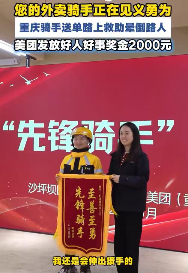 城市的烟火气里,总藏着不为人知的温暖与担当,3月7日中午,重庆红土地附近正值外卖配送的午高峰,骑手周云川正奔波在送餐的路上,却在途中遇到了紧急一幕:一名陌生中年男性突然倒在路边,情况不明。没有丝毫犹豫,周云川当即停下送餐工作,第一时间上前查看路人情况,这暖心的一幕也让不少网友为之动容。 可能很多人都不知道, 这个热心肠的外卖小哥啊, 他不仅仅是个普通的送餐员。他平时也是个特别有责任心的人, 还是个党员呢, 就像咱们社区里那些带头做好事的模范一样。 跑单多年来,他始终把善意藏在日常里,还带领着志愿者服务队做公益,把温暖传递在配送的大街小巷。这次的伸手相助,对他而言或许只是举手之劳,却让我们看到了平凡人最珍贵的品质。