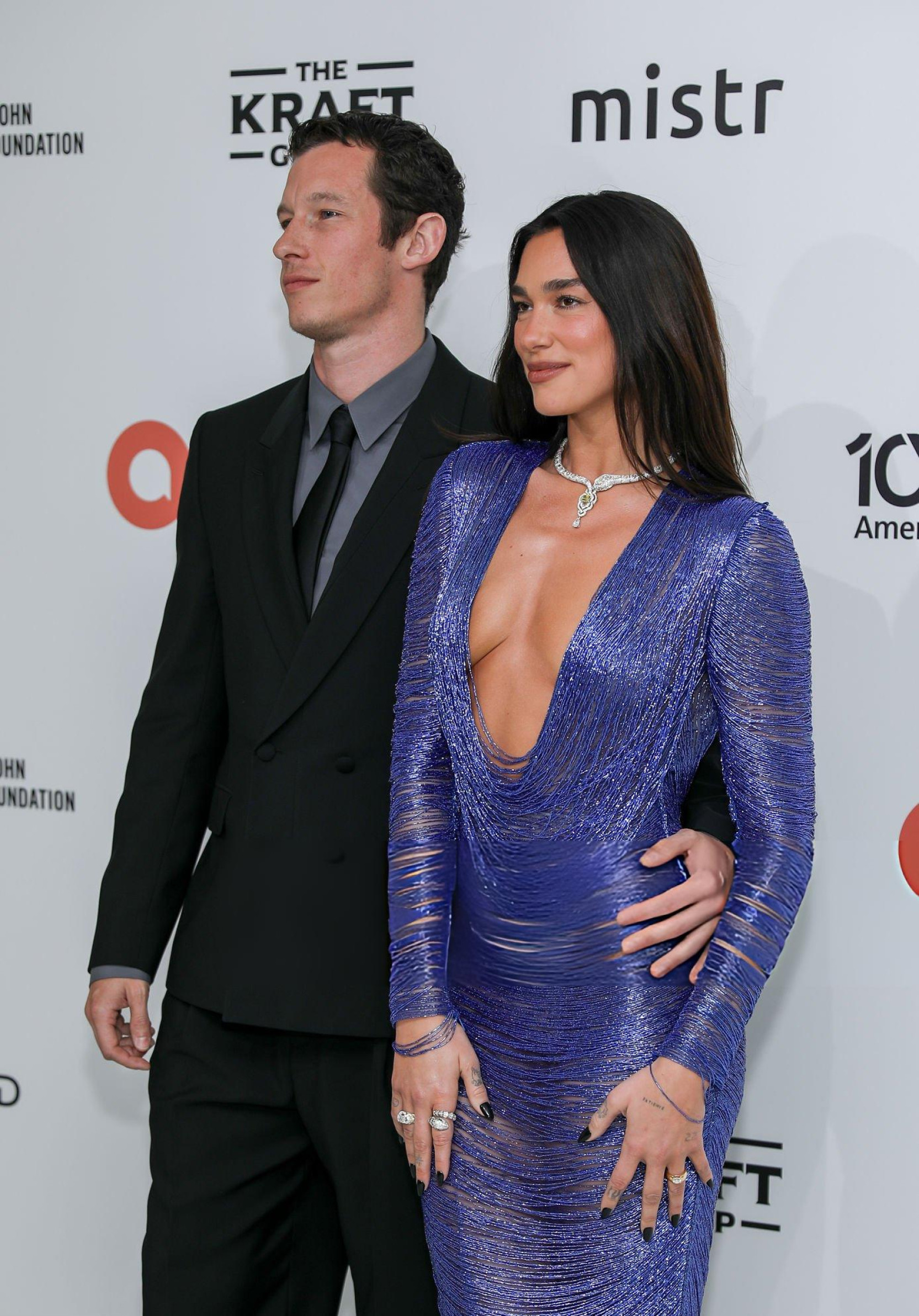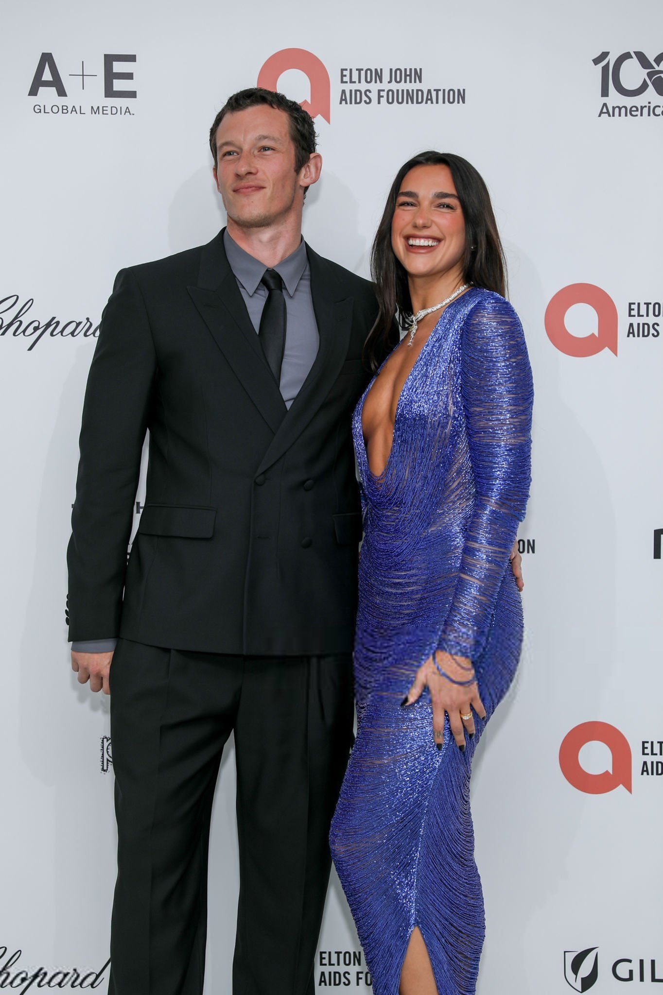 Dua Lipa 和赘婿未婚夫 Callum Turner 出席Elton John爱滋病基金会奥斯卡奖派对
