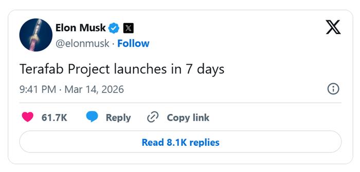 马斯克又放狠话!特斯拉自建“芯片超级工厂”,7天后开干! 财联社3月15日讯(编辑 卞纯)老马这次是真的急了,也是真的拼了!他在X平台上直接官宣:特斯拉的Terafab造芯项目,7天后正式启动!这可不是小打小闹,而是要建一个比现有“超级工厂”规模大得多的芯片基地。 为啥这么急?因为马斯克算了一笔账:就算把供应商的产能榨干,也满足不了特斯拉对AI算力的恐怖需求。与其看别人脸色,不如自己下场造! 这次的核心大招是正在研发的第五代AI芯片(AI5)。据爆料,这颗芯片的目标是2027年量产,性能简直要“炸裂”:算力是现款AI4芯片的50倍,内存容量更是高达9倍! 这是什么概念?相当于给特斯拉的自动驾驶和机器人装上了“超级大脑”。 以后,从满街跑的电动汽车,到人形机器人Optimus,再到后端的AI训练和数据中心,全都要用上这颗自研的“中国芯”(哦不,是“特斯拉芯”)。甚至连英特尔都被传可能在谈合作,可见这事儿动静有多大。 大白话点评一下: 以前大家觉得特斯拉是造车公司,后来说是科技公司,现在老马是要彻底变成“硬科技制造巨头”。芯片是AI时代的石油,特斯拉不想被卡脖子,直接决定自己打井采油。虽然造芯片难度比造车还大得多,良率、工艺都是地狱级关卡,但考虑到马斯克“第一性原理”的疯狂执行力,谁敢说这饼画不圆? 7天后大戏开场,咱们拭目以待,看特斯拉如何再次颠覆行业!特斯拉 马斯克 AI芯片 科技前沿
