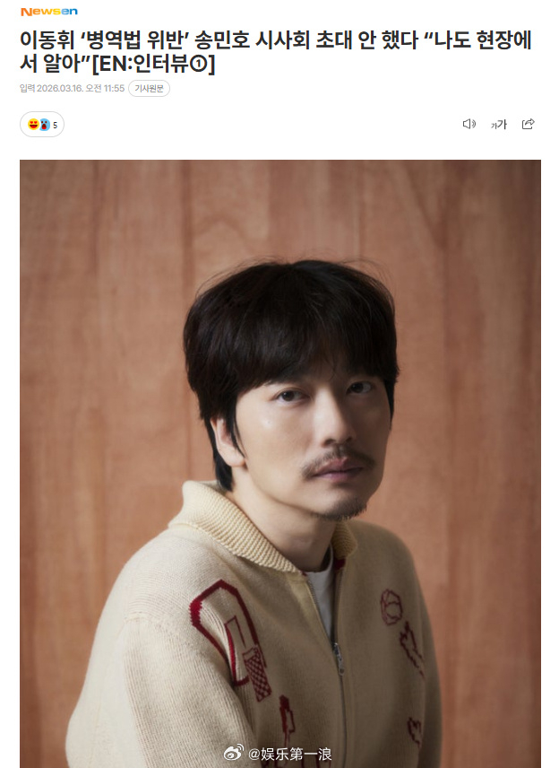 李东辉否认邀请宋旻浩参加试映会 割席——李东辉表示未邀请“违反兵役法”宋旻浩参加试映会,“不是我邀请的,我也是当天在现场才知道(宋旻浩来了)的。也是意想不到的部分。”