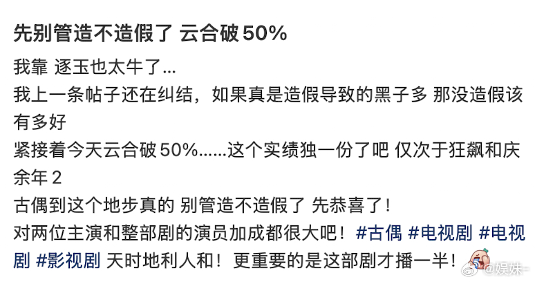 很奇怪一部爆剧竟然大部分都是质疑声,甚至剧粉和粉丝都没法控评评论区😂