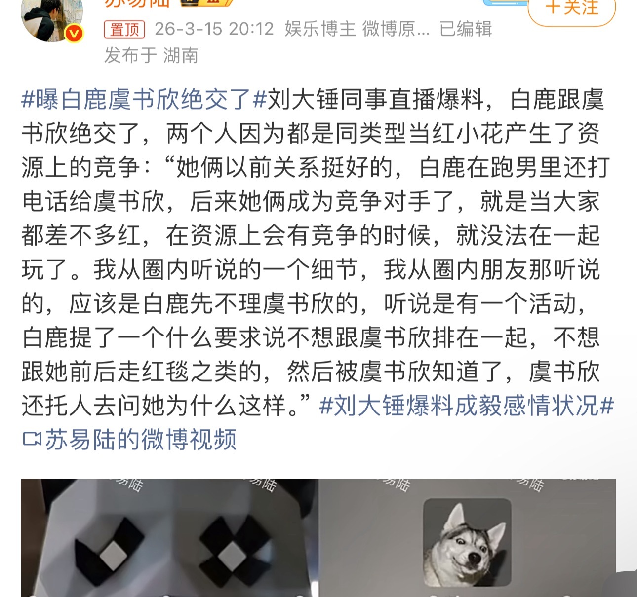 曝白鹿虞书欣绝交了这是什么小学生词条